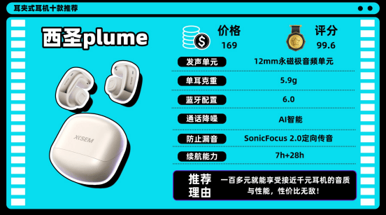 耳夹式耳机买什么品牌?第一款:西圣Plume耳夹式耳机