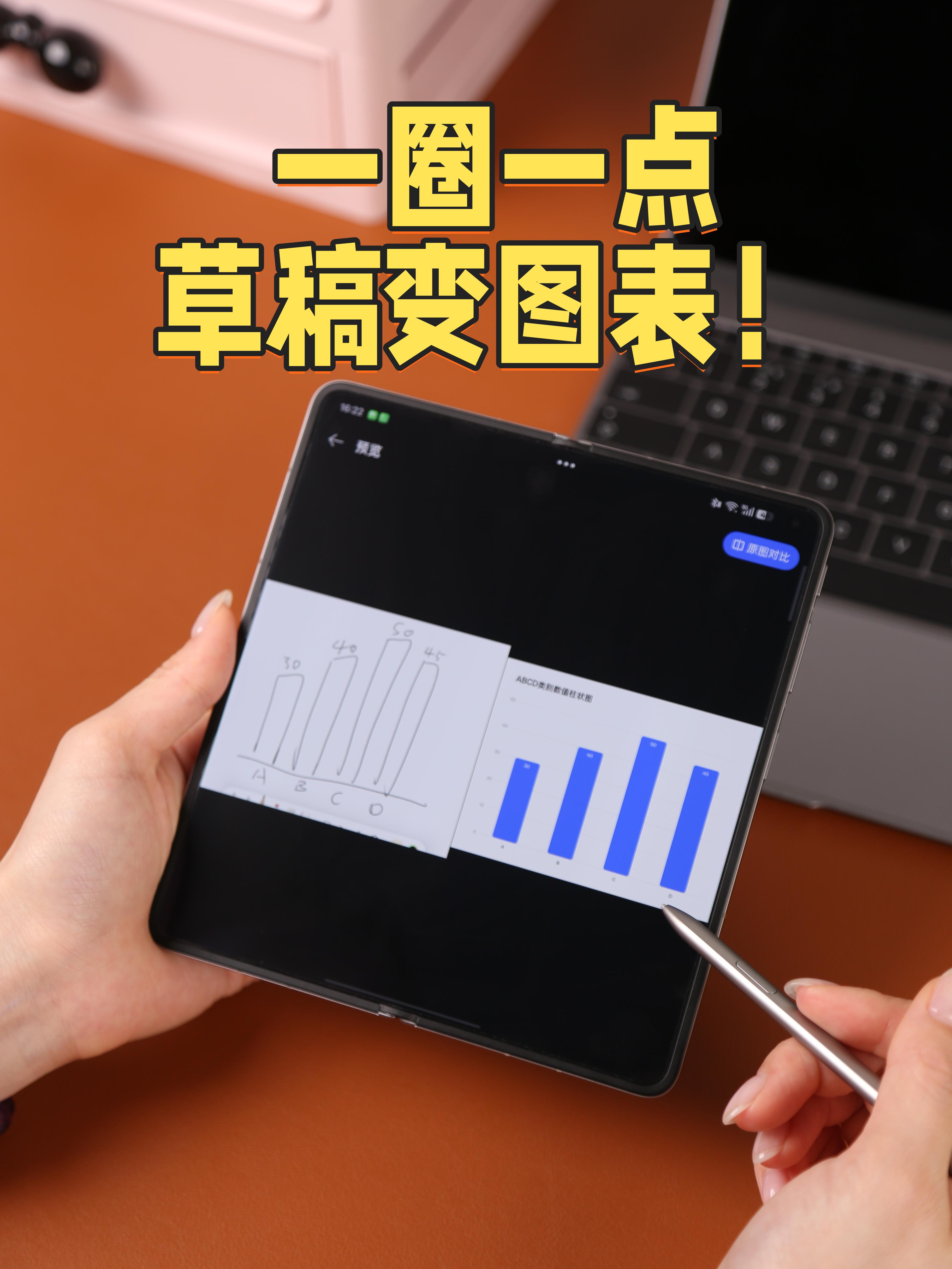 值得一提的是,OPPO Find N6甚至还是神笔马良来的!草稿上随手画的数据,用AI手写笔一圈一点就变成正式的图表~这还费什么劲去Excel上键入作图啊!