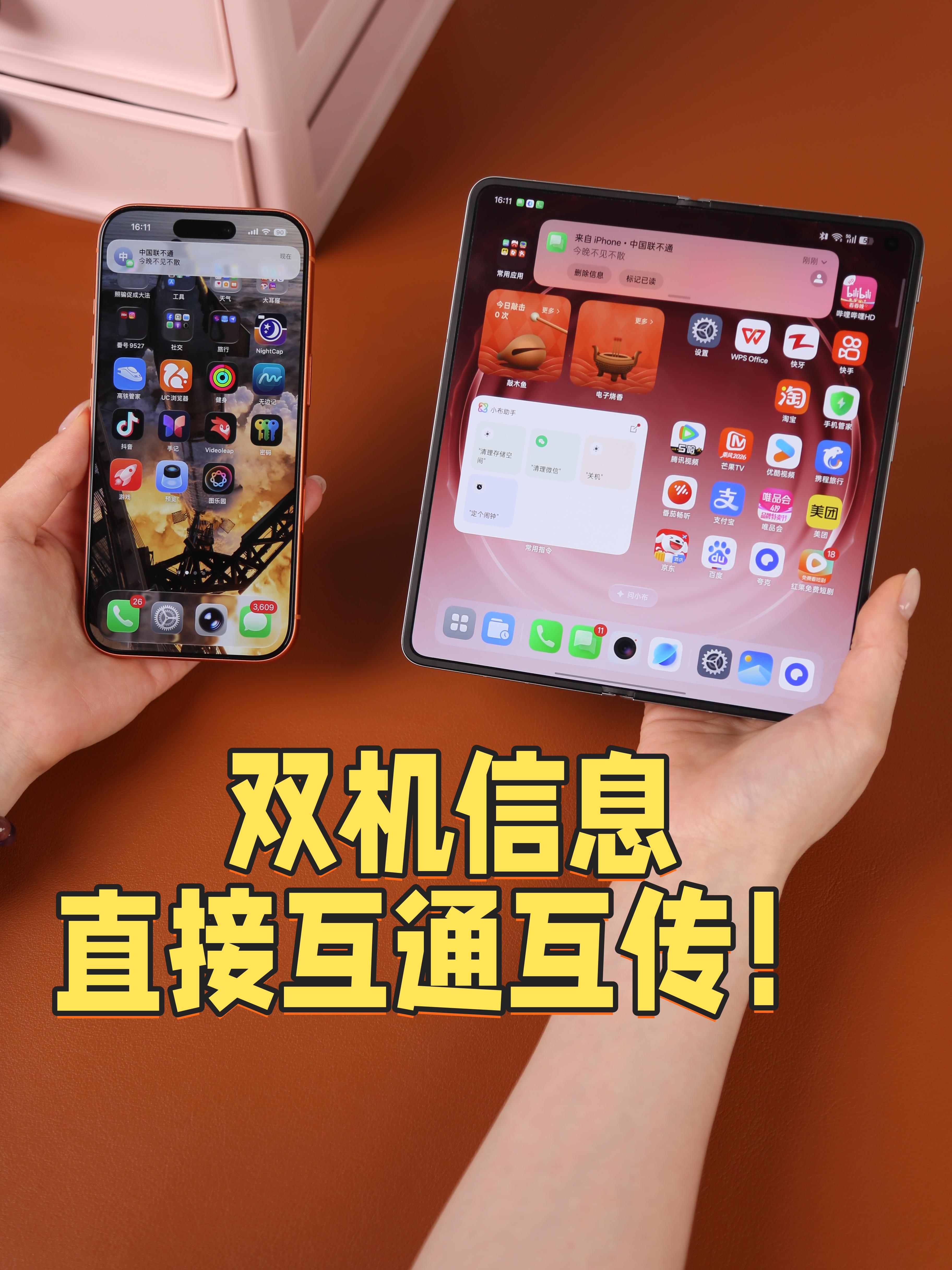 这段时间试了一下OPPO Find N6+iPhone 17 Pro的组合才知道双机党的爽,从短信到电话都可以互通互传的,平时只用带一台手机出门就完事了~