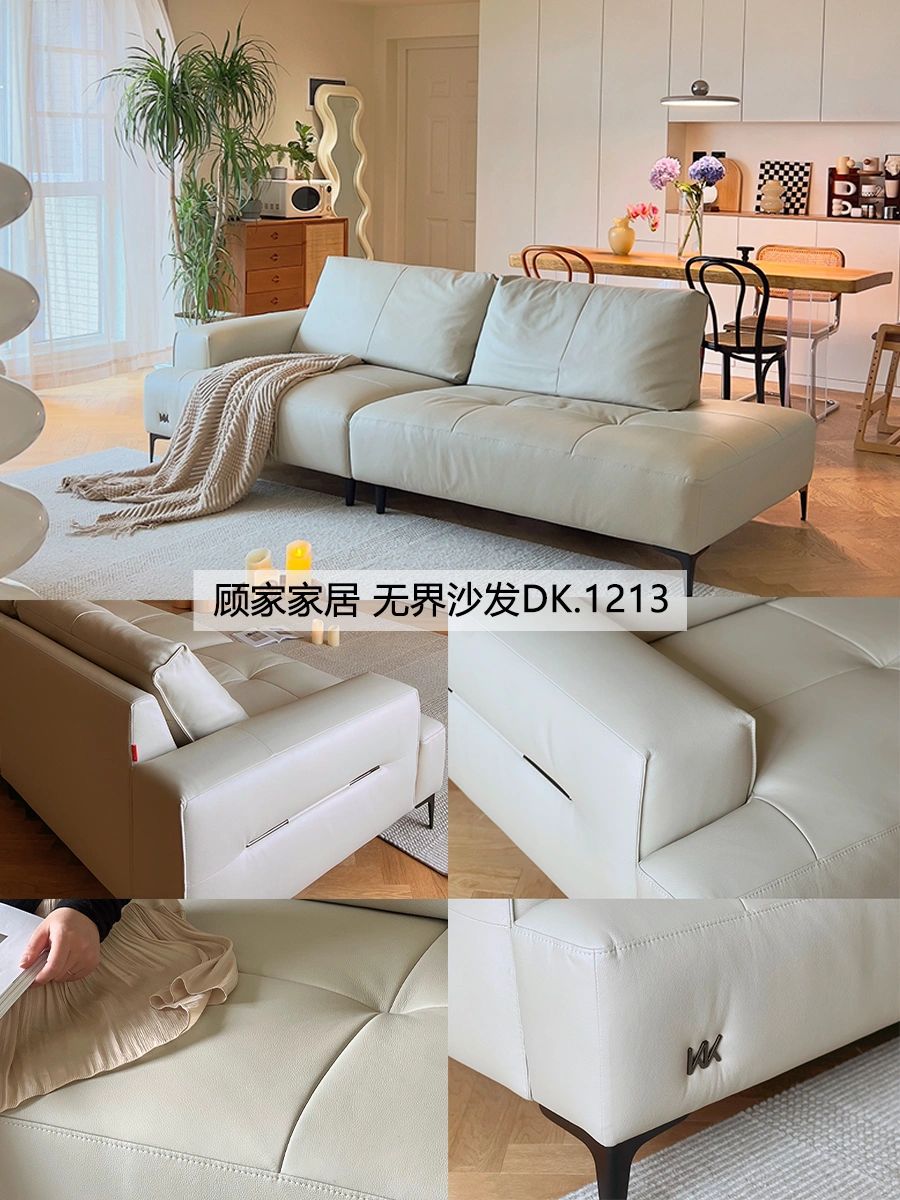 矮靠背、低扶手等打破传统的设计留白,让沙发别具一格,显得自有又慵懒,同时增加了空间的通透感,让小户型空间视觉上增大了。70%羽毛填充靠包,柔软又有充满包裹感。66cm宽大坐深,拿走靠包是87cm,简直可以当床了,十分无拘无束的设计。头层牛皮质感十足,各处细节让人大爱!