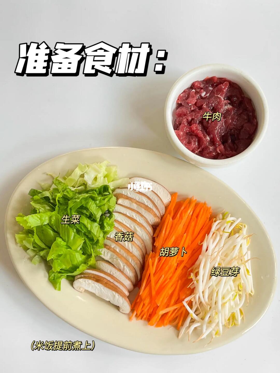 大米,牛肉,胡萝卜,香菇,绿豆芽,生菜