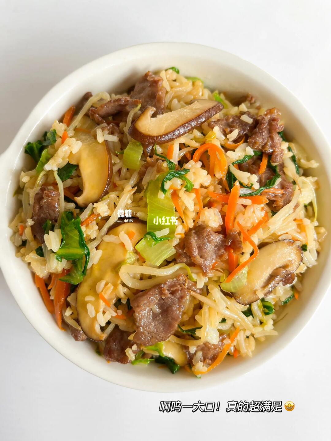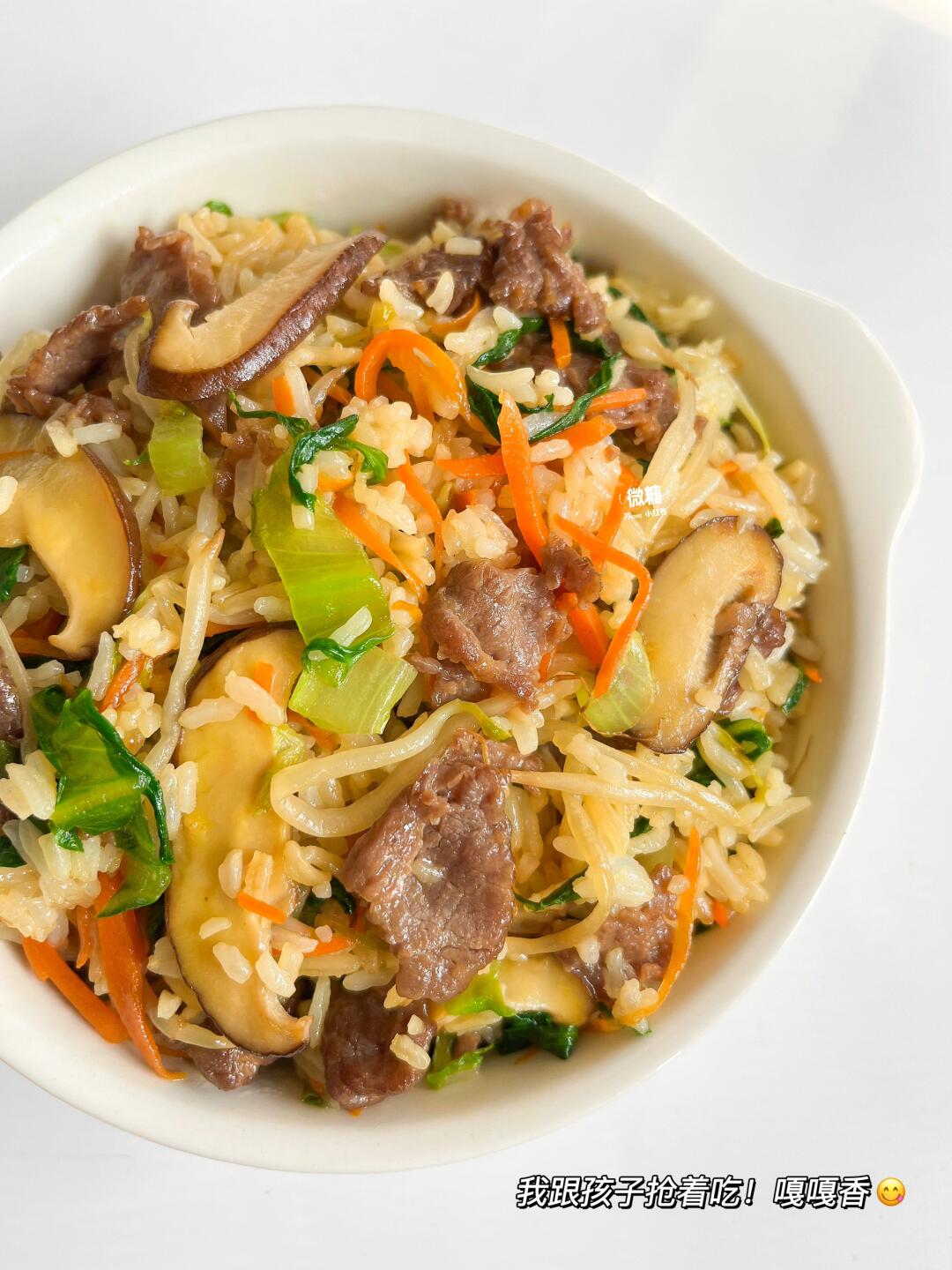 有没有跟我一样很喜欢吃这种蔬菜多多的炒饭‼️感觉超级健康干净滴~这样做的炒饭不容易腻🌝这款牛肉炒饭真的很好吃😋香喷喷✔️我跟孩子抢着吃🤣孩子长个每周建议吃两三次牛肉噢,不知道怎么做的就试试这款炒饭8🤟🏻简单又营养‼️