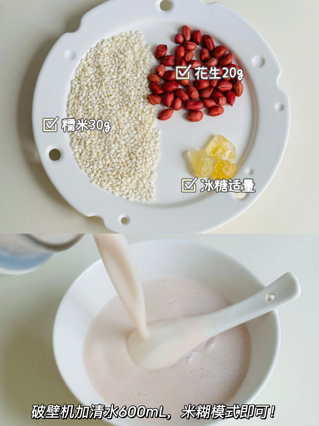 1️⃣糯米30g➕花生🥜20g➕冰糖适量