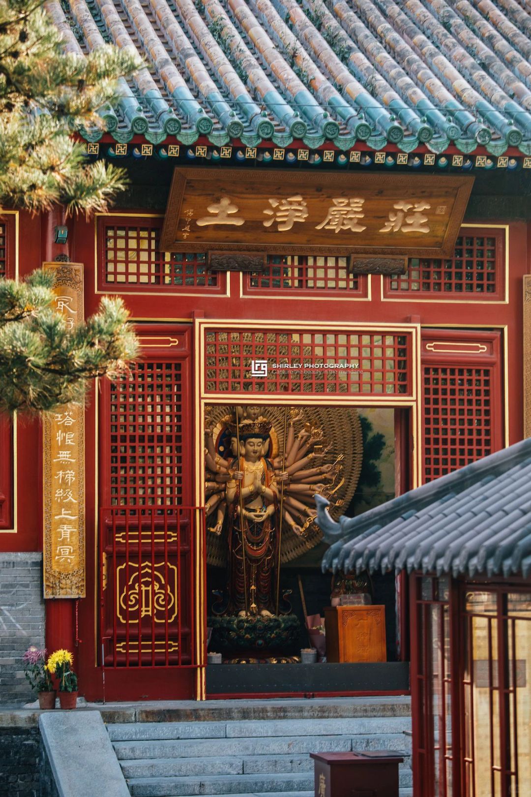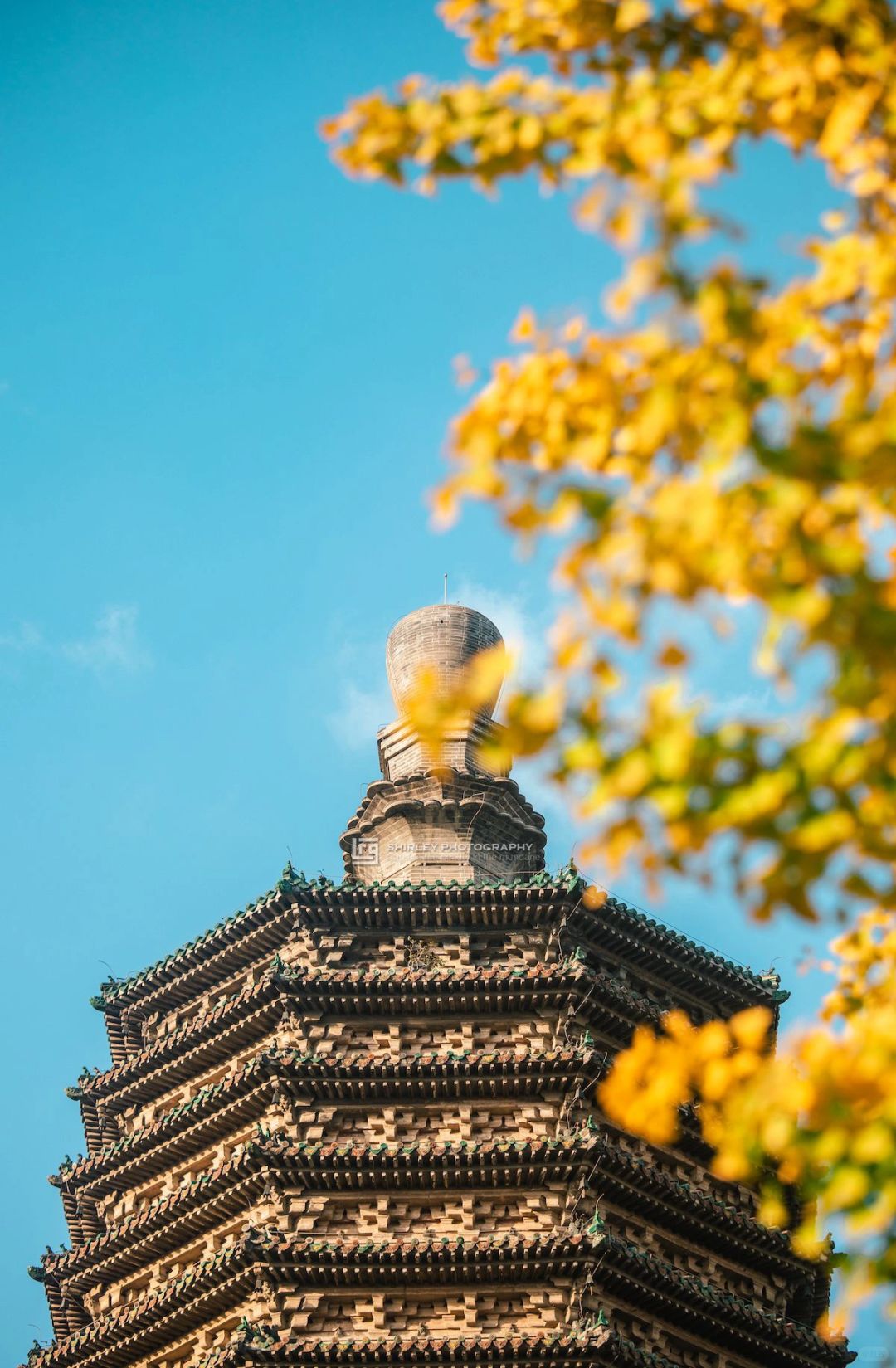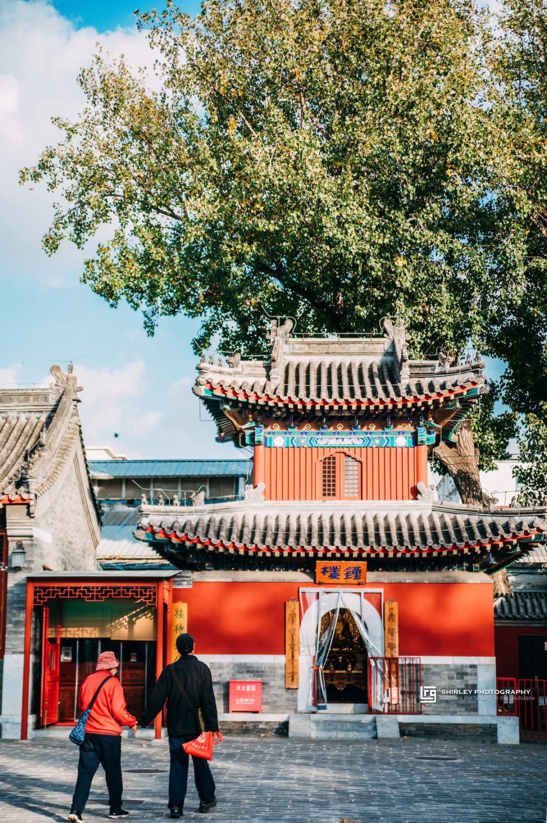 🔸接引大殿前有两棵银杏树,每年右手边这棵总会先一步泛黄,在午后的阳光下格外耀眼。