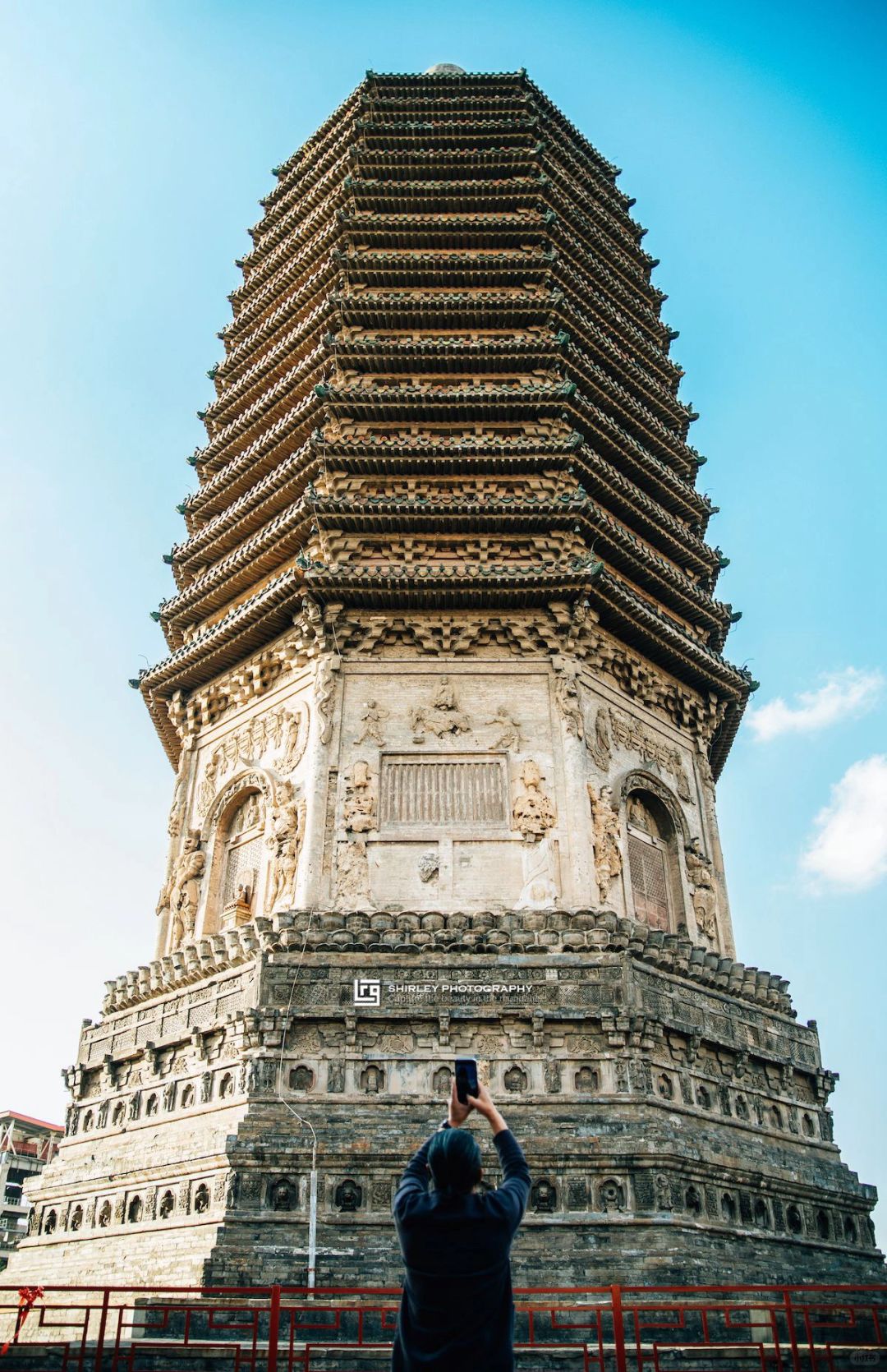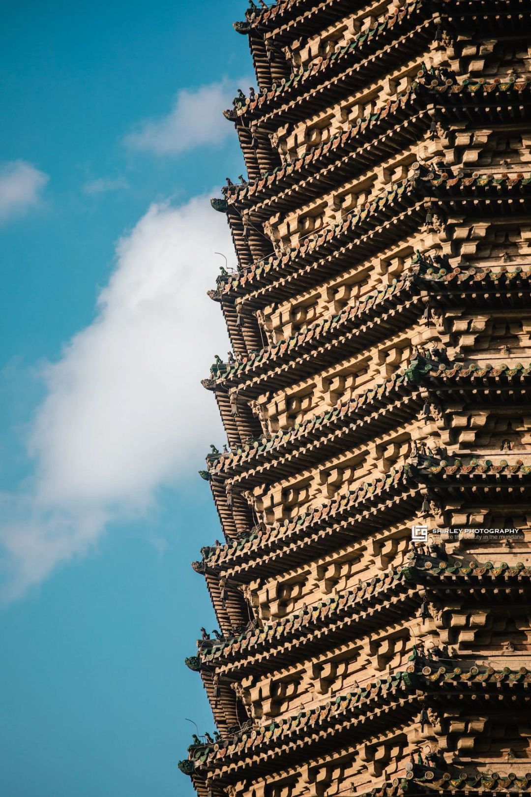 🔸驻足细观天宁寺塔,会发现其各部分比例极为匀称协调,各部分相互组成了轻重、长短、疏密相间相连的造型。梁思成曾盛赞此塔立面富有音乐韵律,并以此为例来阐述中国建筑艺术的节奏。