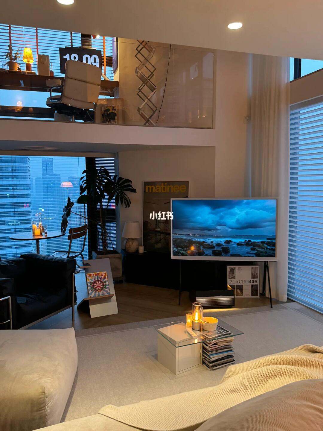 客厅尺寸5乘9米左右。做了挑空设计