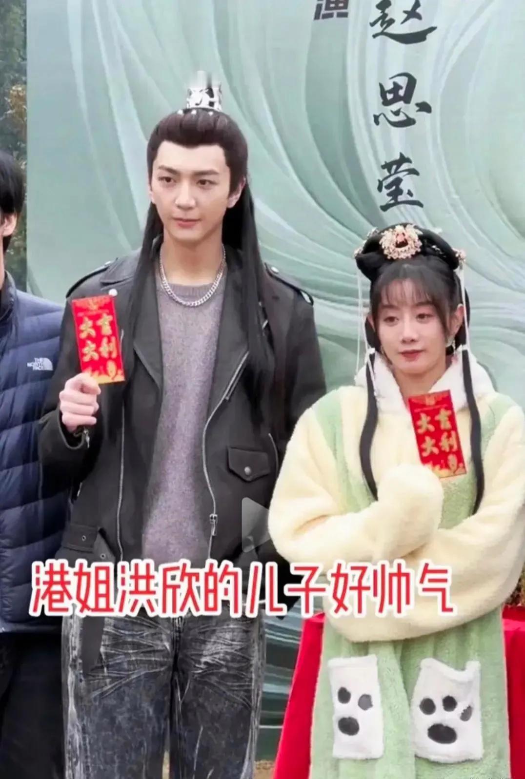 香港港姐洪欣的儿子张镐濂短剧《青莲劫》开机路透图。他成功遗传了洪欣的高颜值,演技