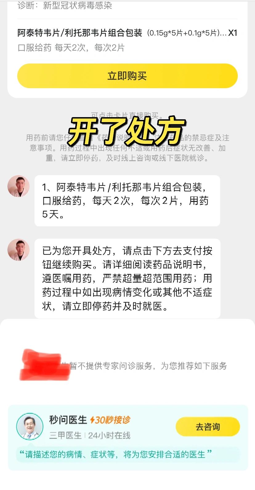 泰中定,阿泰特韦片,首发某平台,虽然能开处方,但是没货,想网络购买这个朋友别选这个了。先诺欣有货的。