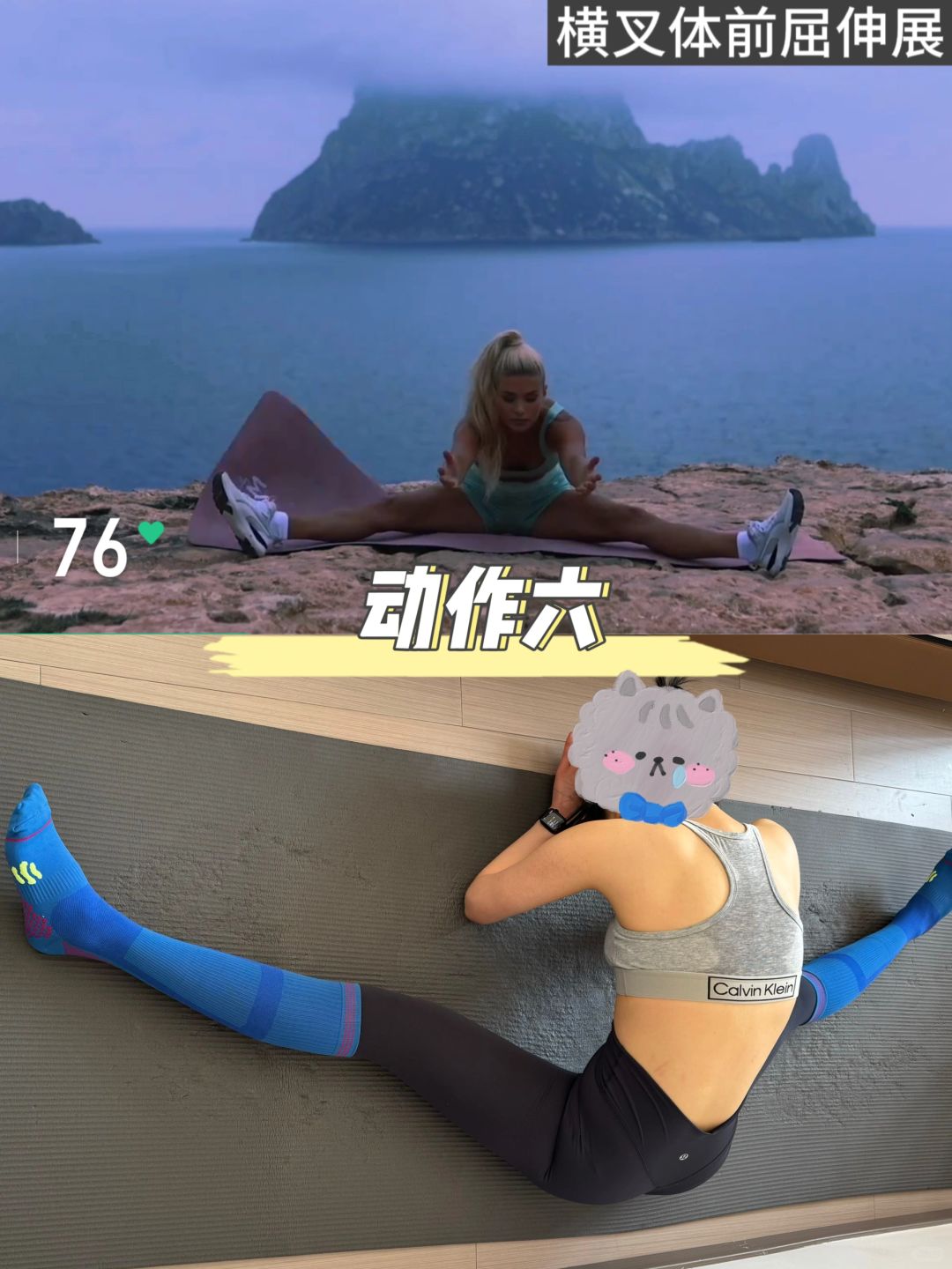 帕梅拉的腿部拉伸练完腿超级酸痛,bgm真的也太好听了吧! 针对大腿前侧和臀大肌的舒缓和松解 坚持每天拉伸,腿部线条也会越来越好看的。 A不要过渡勉强自己,那个动作只要有轻微的疼痛就停留在那里就好了。 动作一:髋屈肌拉伸 左右 动作二:举腿拉伸 左右 动作三:后仰腿➕腹拉伸 动作四:半劈叉拉伸 左右 动作五:大腿拉伸 动作六:横叉体前屈拉伸 运动难度:⭐️⭐️⭐️ 跟练博主:帕梅拉