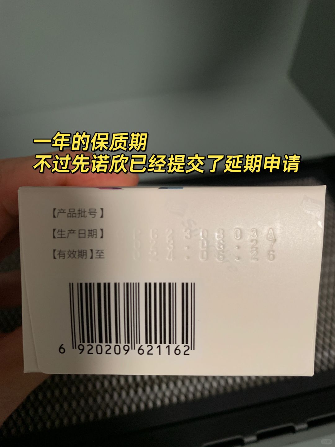 网络平台下单的先诺欣,保质期一年,去年6月份生产,看来还是存货,今年6月26到期。不过先诺欣已经提交了延期申请。延期可能性很大。先屯着吧。
