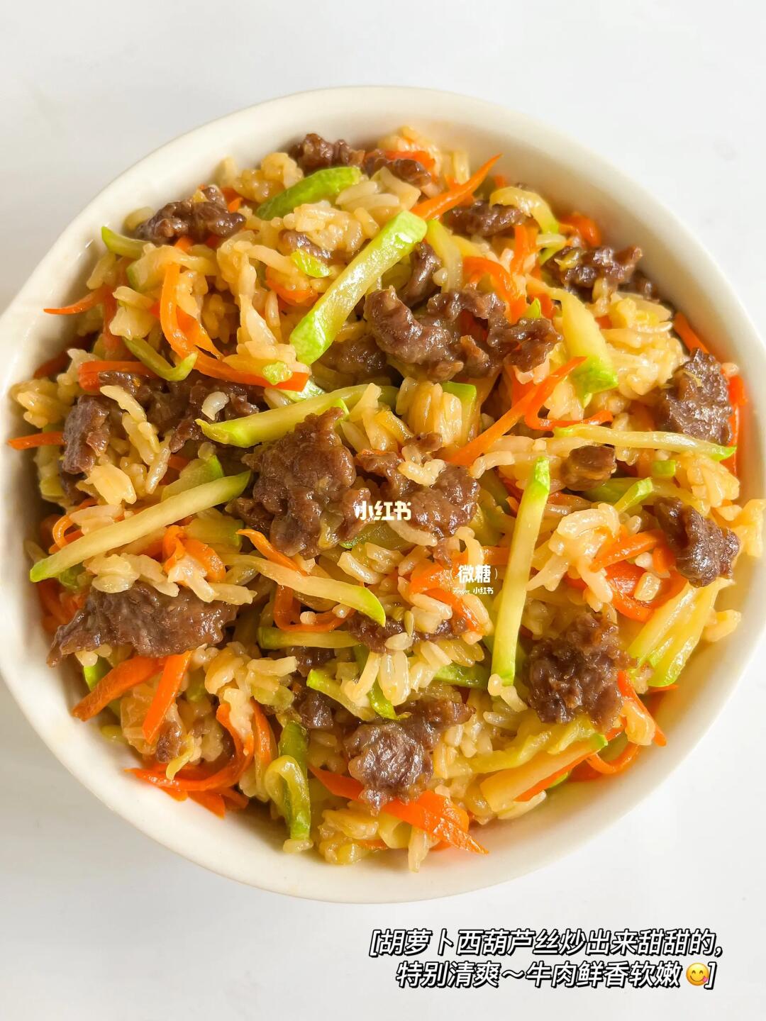 今天做的这款西葫芦牛肉炒饭真的是越吃越香的那种!加了胡萝卜西葫芦炒出来清甜爽口,都不带腻的🤫可以让孩子多吃蔬菜🥬搭配牛肉一起吃~孩子长个必做的食谱呀!属于一看就特别干净健康的饭菜🤗