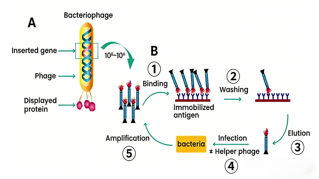 ✔️洗脱:通过改变pH、使用竞争性配体或蛋白酶切等方式,回收特异性结合的噬菌体。