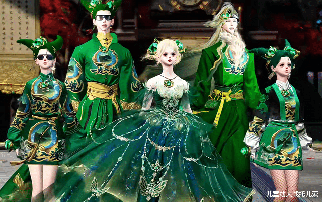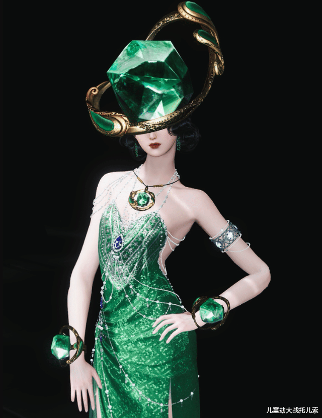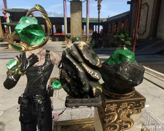 天赏石套装一出手,所有玩家彻底疯狂。有人换上绿色系的服饰,把自己的脑瓜子都整成了一整颗的天赏石,好似天赏石成精: