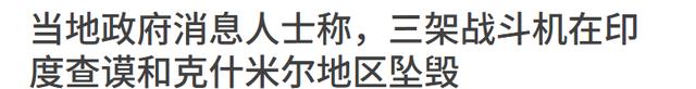 据路透社援引当地政府消息来源的报道,确实有三架战斗机坠毁印控克什米尔地区。