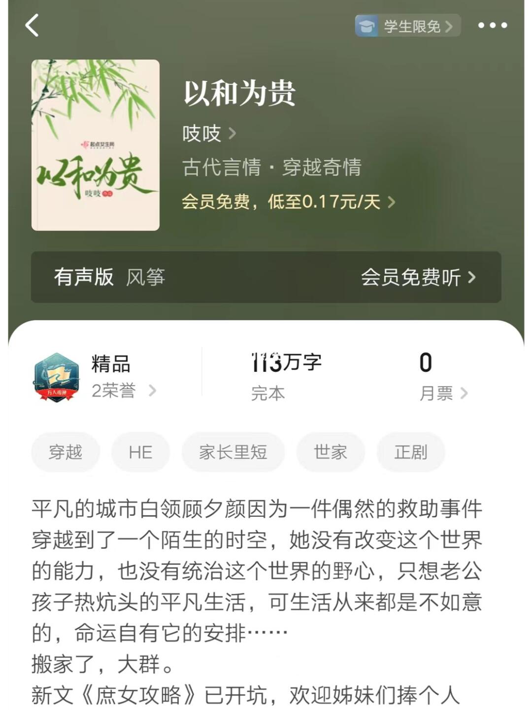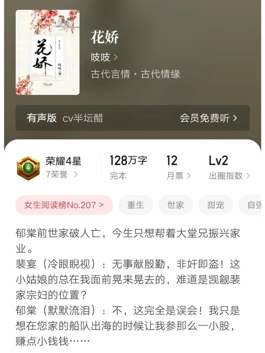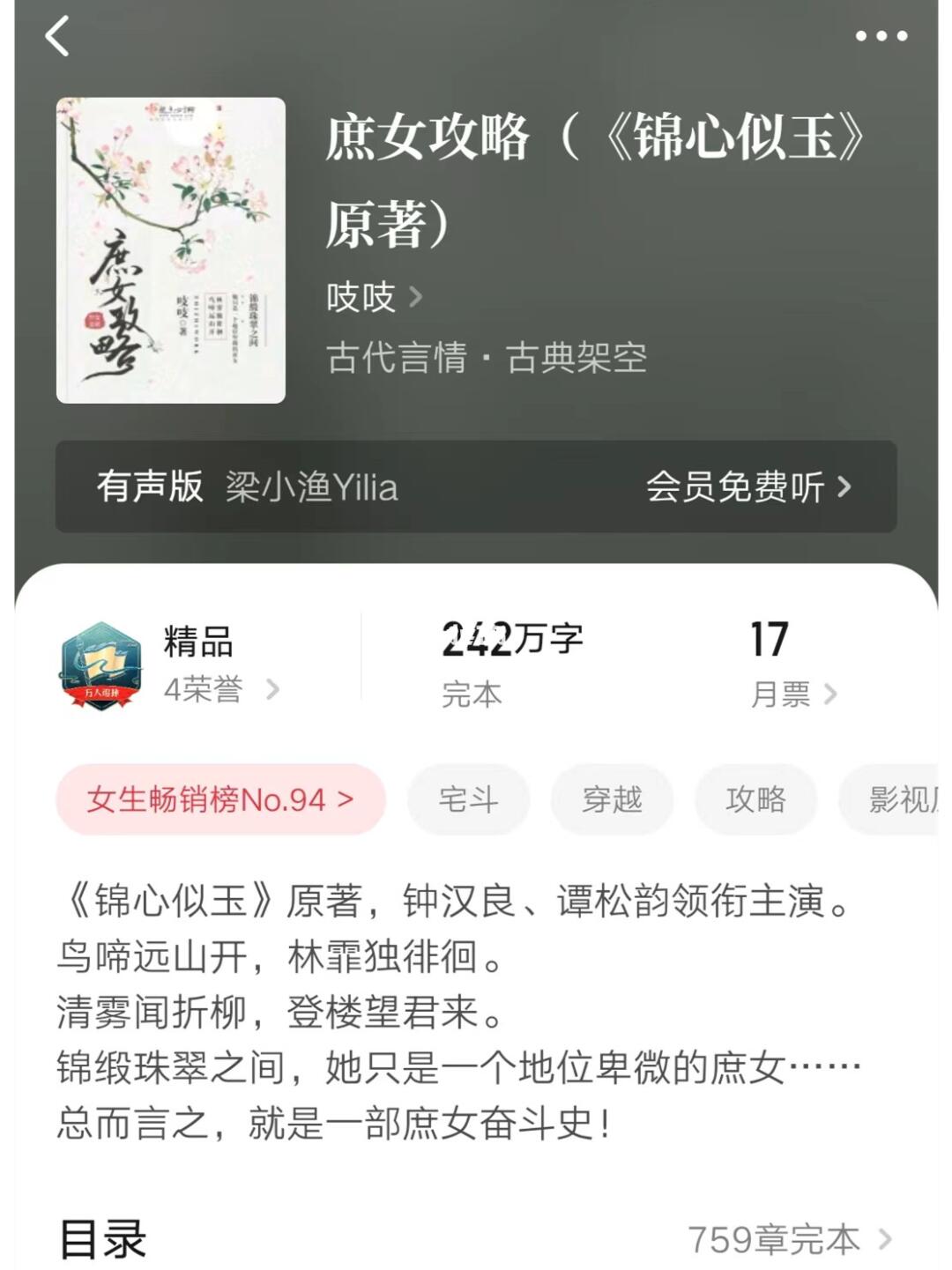 吱吱大大的文基本是以古代言情为主,文笔细腻,宅斗、种田文、权谋、日常、慢热、家长里短,是喜欢宅斗古风向的友友们千万不能错过的宝藏作者!