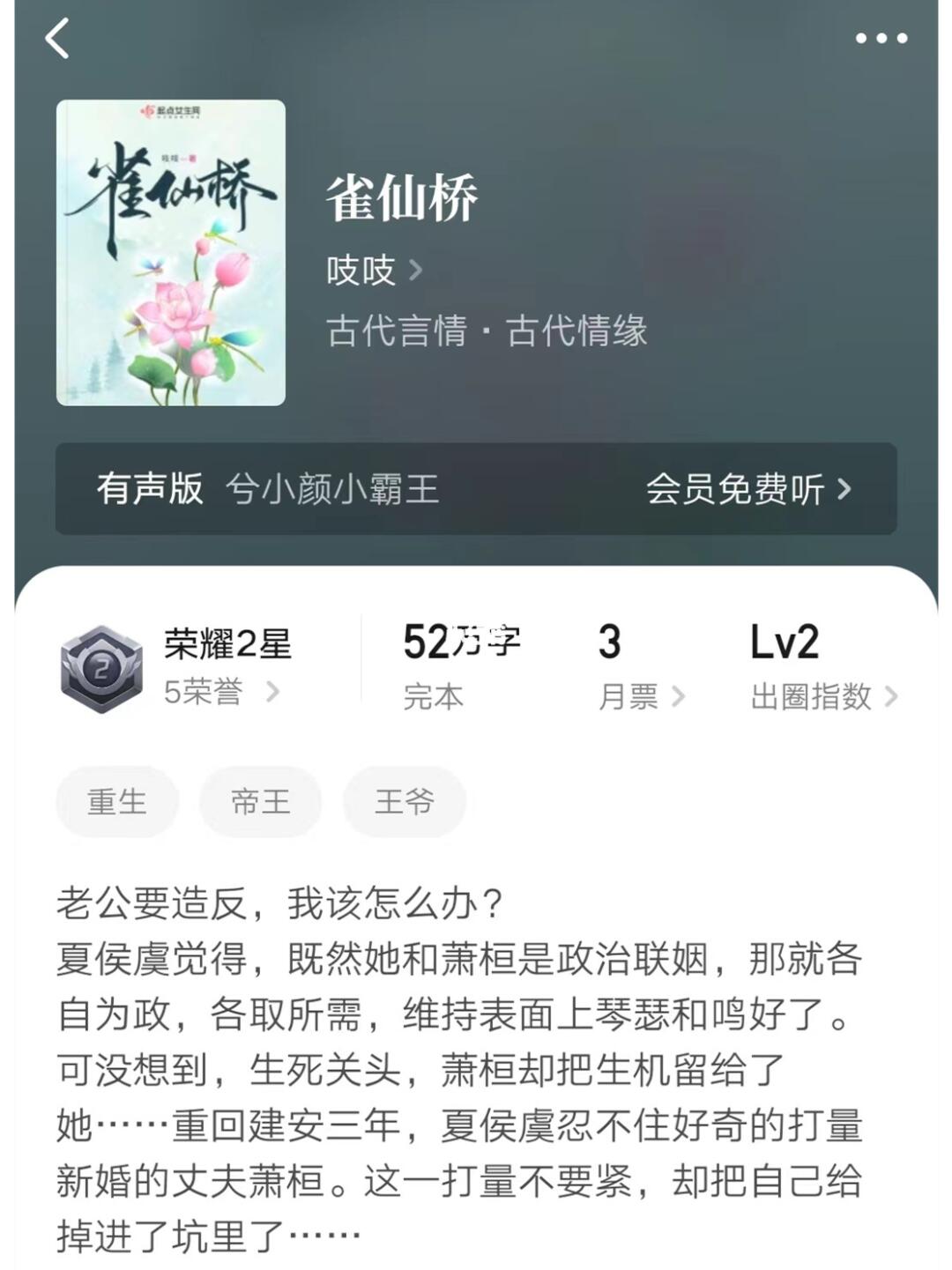 4.《雀仙桥》,主角:夏侯虞、萧桓