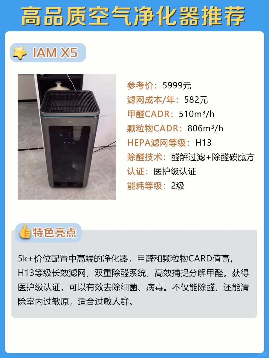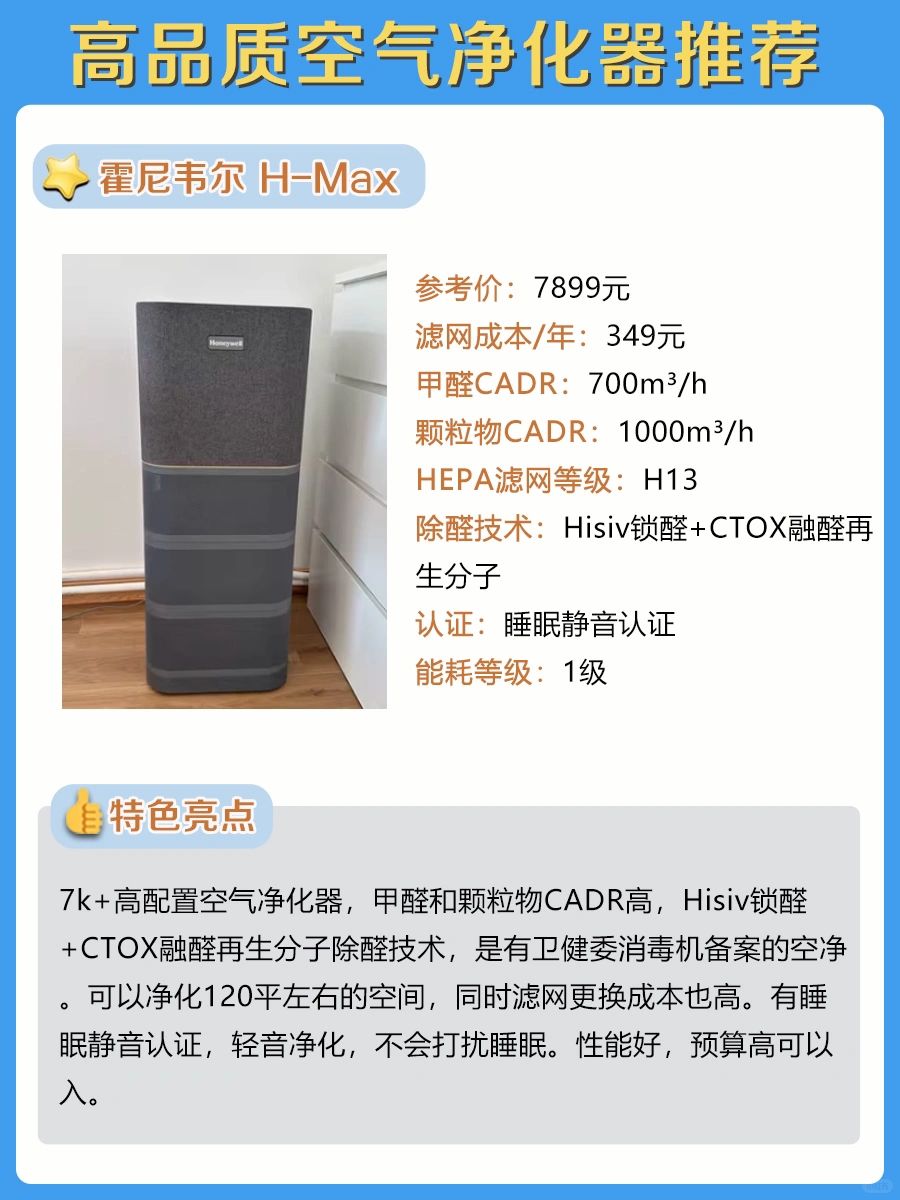 这款是2k+低价高配的空气净化器,甲醛和颗粒物CADR都很高,适用净化面积达120平米,配备H13等级的HEPA滤网,固化分解除醛+醛溶解分子筛双重分解除醛,无二次污染。紫外光能堡垒,全链路消杀。有母婴级认证、护理级认证、除过敏原认证、睡眠级认证4项家电院认证,对比市面上中高端空净一点不逊色,而且是一级能效,使用成本低,性价比超高的。