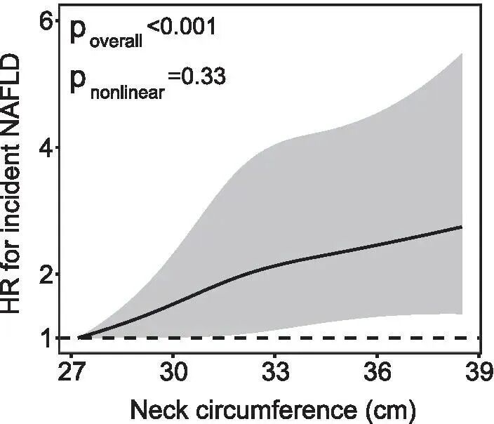 图1 颈围(连续变量)与非酒精性脂肪肝疾病发病风险的关系