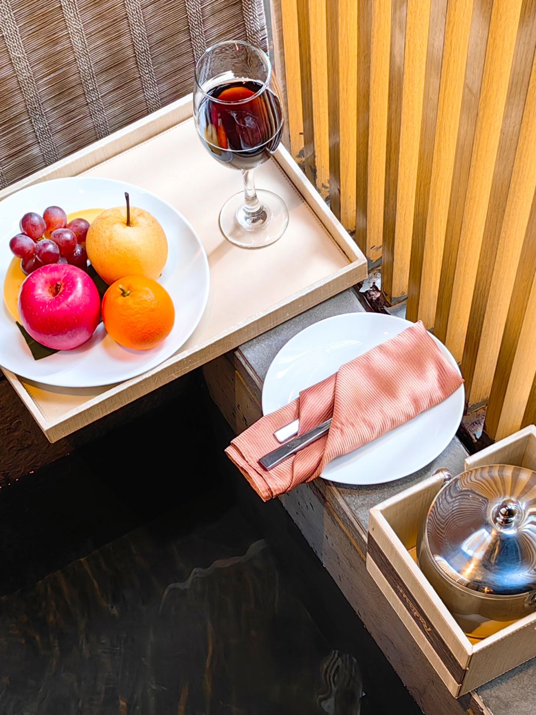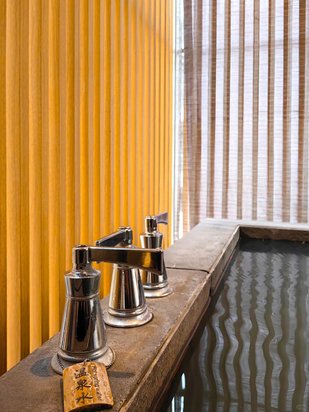 房间比较小,但是麻雀虽小五脏俱全,受制于面积,私汤不好进出,但是酒店精心做了一个镂空带镜子的隔断,这个设计我非常喜欢。温泉据说是南温泉的真温泉。