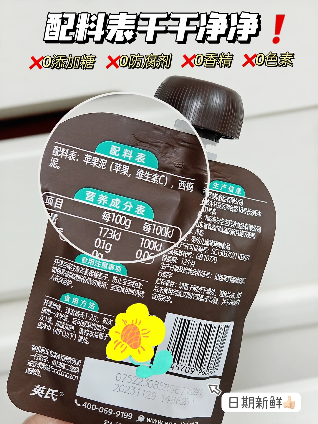 ✅注意生产日期:选择日期更新鲜的果泥,口感营养更好