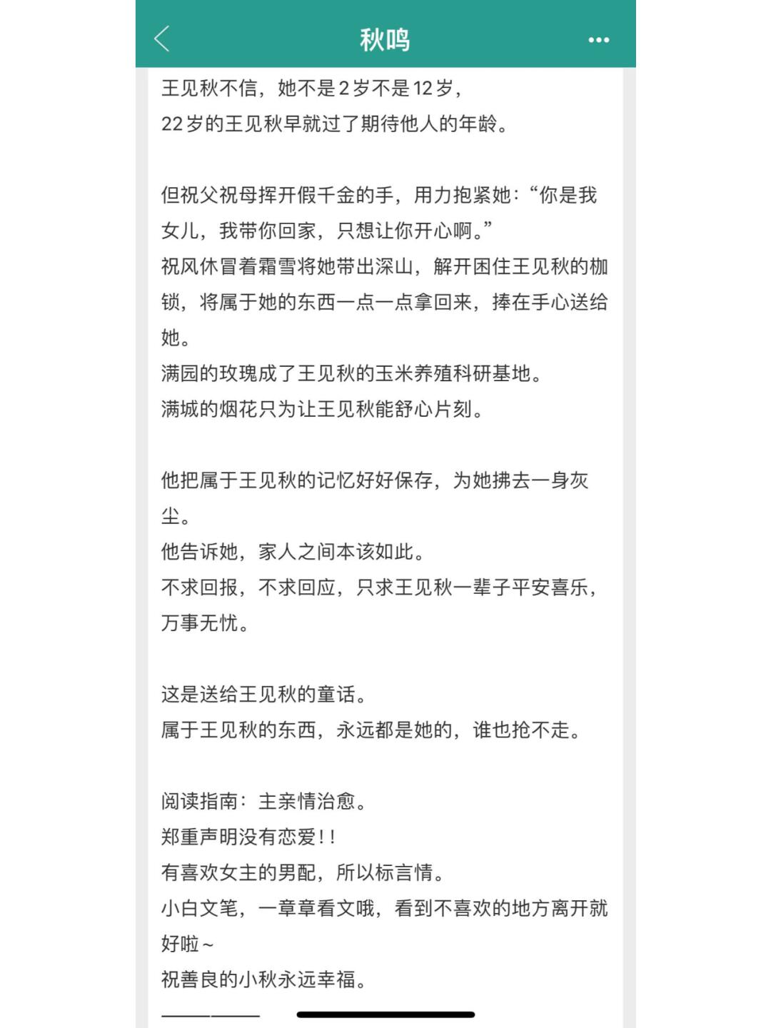 本期推荐:《献给真千金的童话》,改名后新名字《秋鸣》,作者:又一乱玉醉