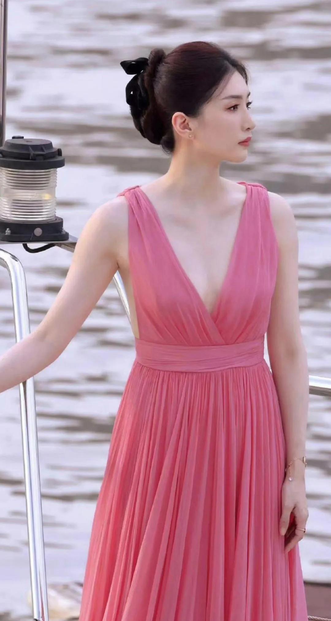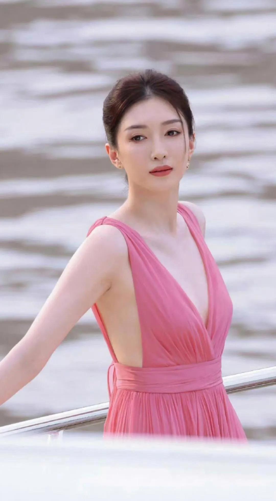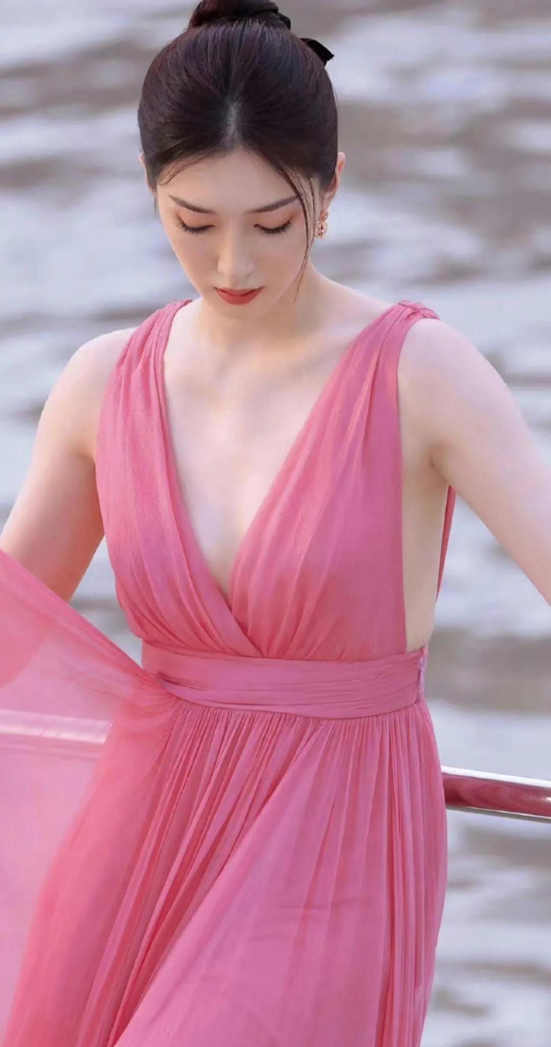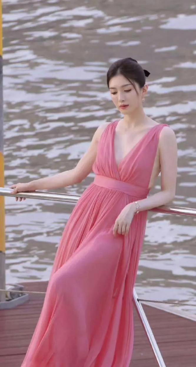 江疏影穿粉红礼服纱裙出席活动,甜美优雅,女人味十足,妩媚性感又不失温柔,真的好迷