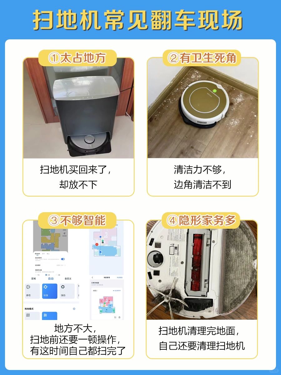 3️⃣不够智能,地方不大,扫地前还要一顿操作,有这时间自己就打扫完了