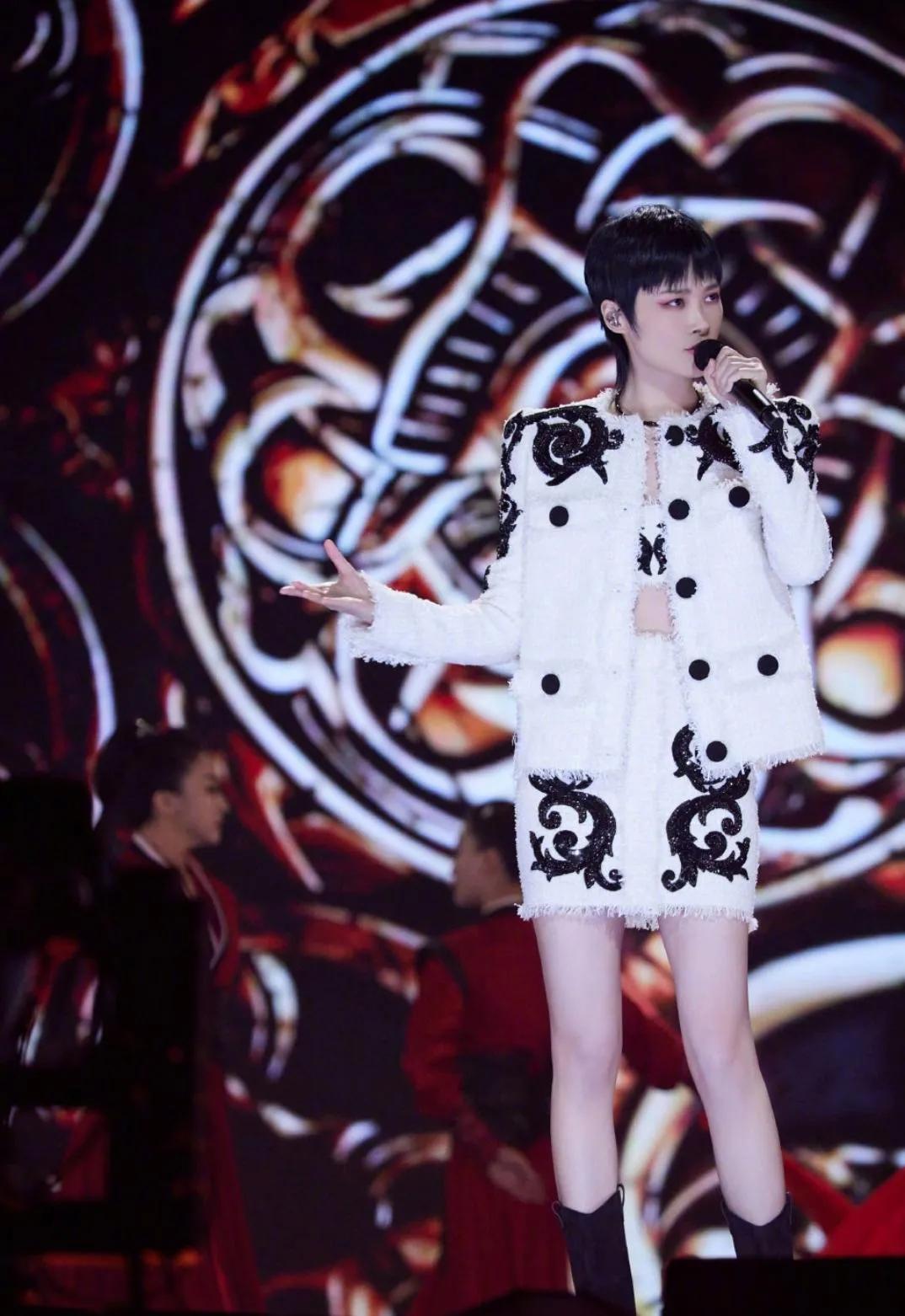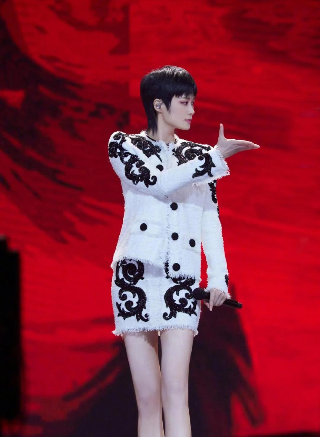 哇!李宇春真是衣架子,身穿巴洛克刺绣装饰花呢套装,气质优雅端庄,又美又飒,女人味十足,一双美腿修长有型好抢镜啊#这个女美炸了# #女明星着装#
