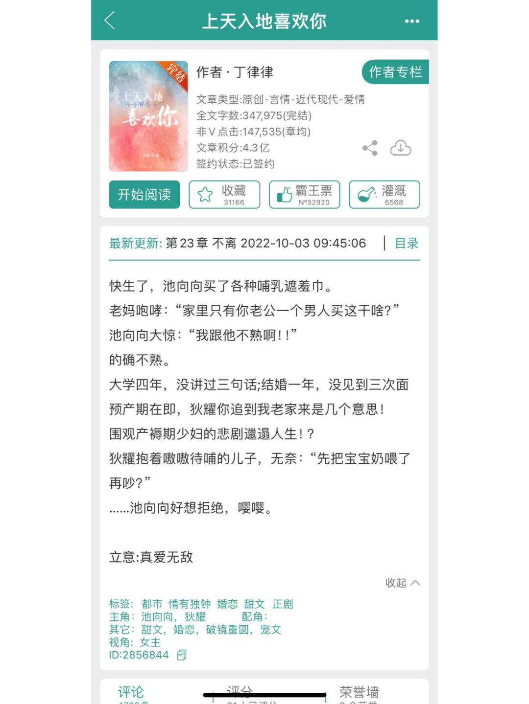 [赞R][赞R][赞R]本期推荐:《上天入地喜欢你》,作者:丁律律