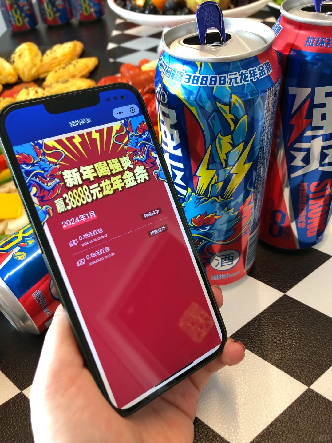 小龙虾都安排上了,今天就喝发财酒吧~新年一定要发发发哈哈哈[发R][发R][发R],特别喜欢这个荔枝口味,清甜饱满香味 hen 浓,龙罐包装氛国感直接拉满~小朋友们看到拉环上的二维码闹者就要扫,连着中了两个红包太开心了[哇R]快接住龙年的第一波好运吧~~