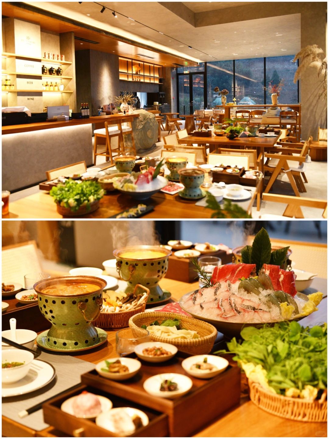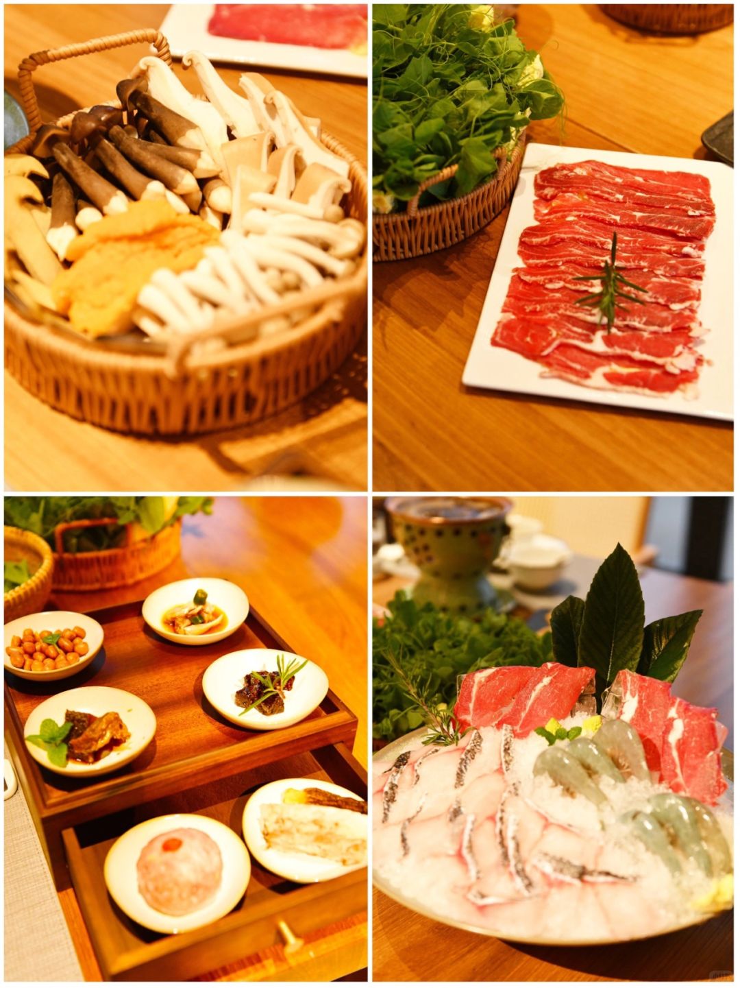 养生汤锅。各种肉类、菌类和蔬菜搭配,仪式感满满