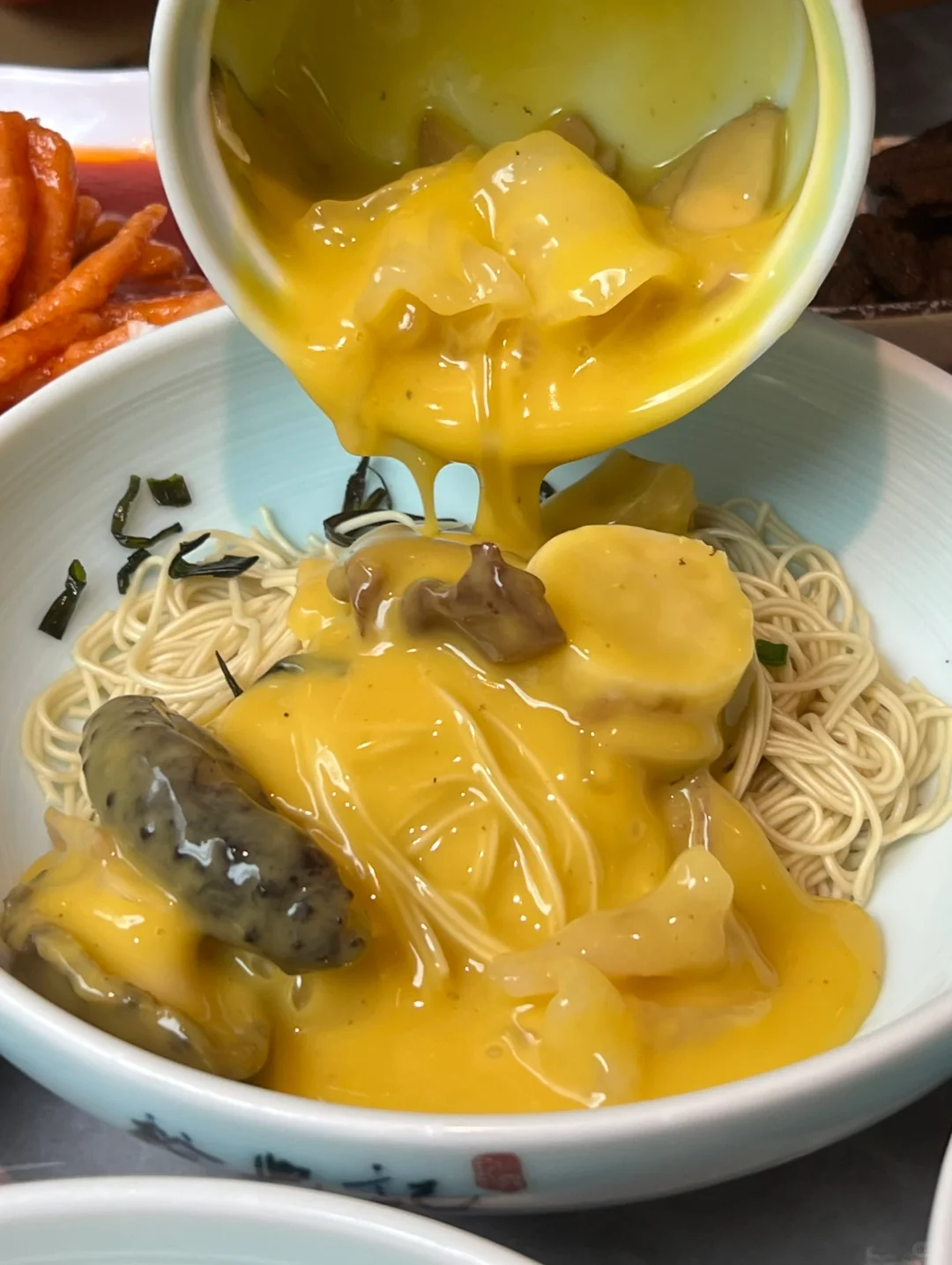 谁能拒绝这一碗蟹黄瀑布面呀!!! 记得淋上蟹醋,多喝点姜茶哈哈