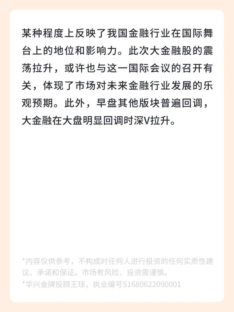 👉 大金融盘中拉升。消息面上,中美金融工作组在北京举行第三次会议。此次会议不仅涉及两国之间的金融合作与交流,更在某种程度上反映了我国金融行业在国际舞台上的地位和影响力。此次大金融股的震荡拉升,或许也与这一国际会议的召开有关,体现了市场对未来金融行业发展的乐观预期。此外,早盘其他版块普遍回调,大金融在大盘明显回调时深V拉升。