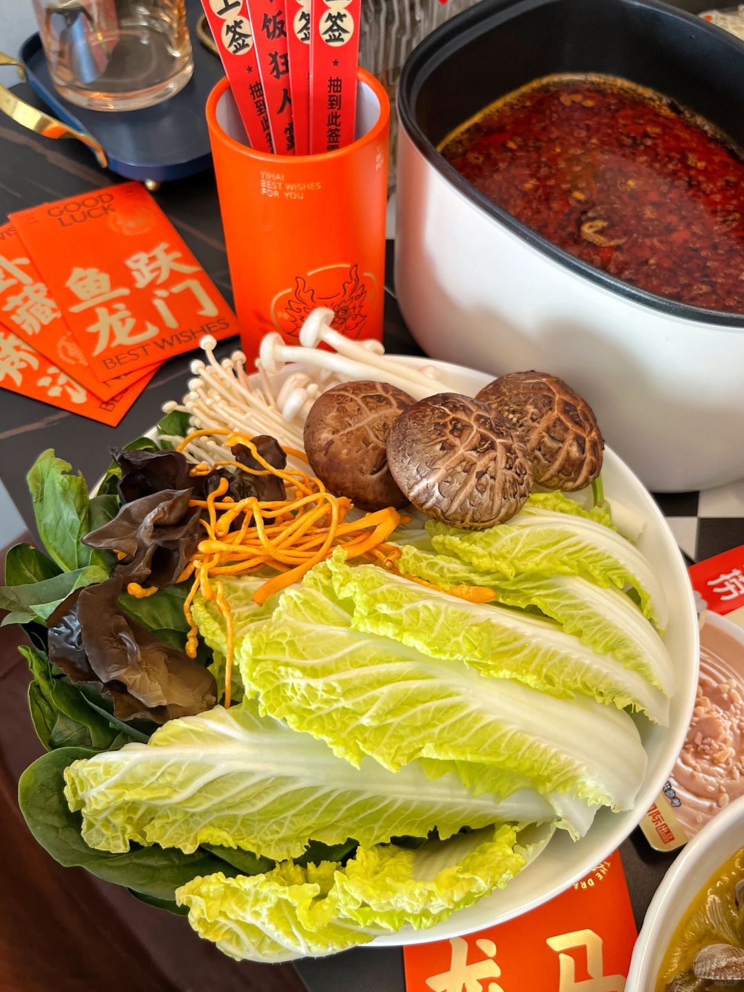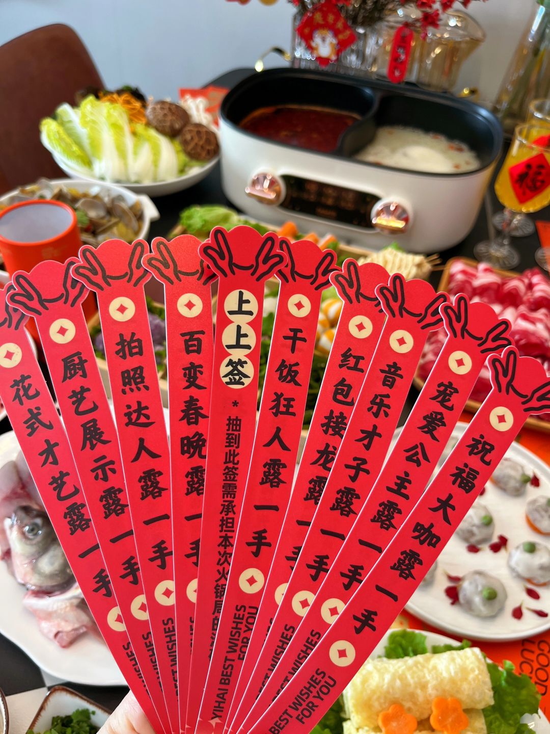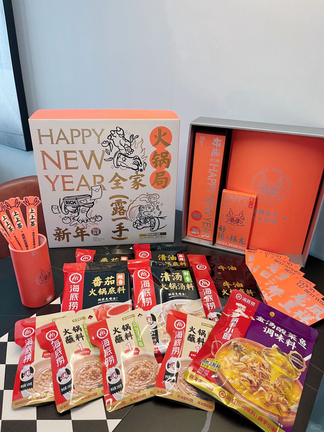 礼盒里还包含了好多新年的周边,好运签筒和接龙红包还能跟家人一边吃火锅一边互动起来简直不要太开心~热闹的新年氛围一下就拉满了~