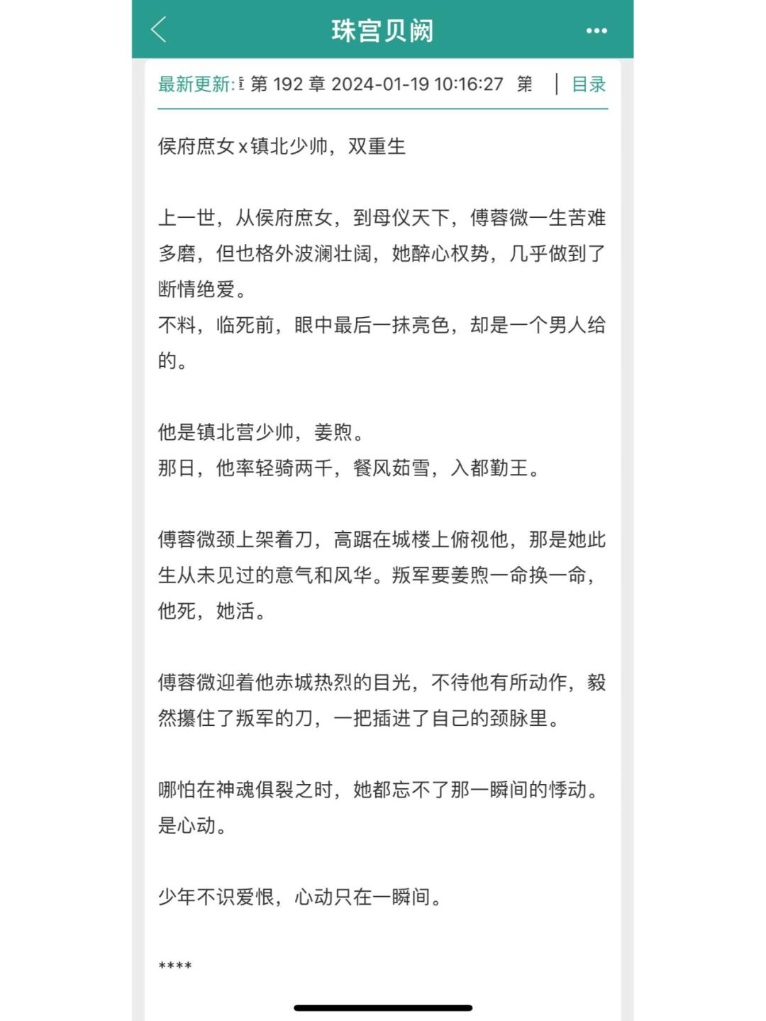 *双重生设定。女主前世为了生存,机关算尽,断情绝爱终于成了一国太后。但最终在国破家亡之际,选择了殉国。临死前,终于见到了镇北营少帅,姜煦。也就是男主,并嘱托男主帮助皇帝复国。