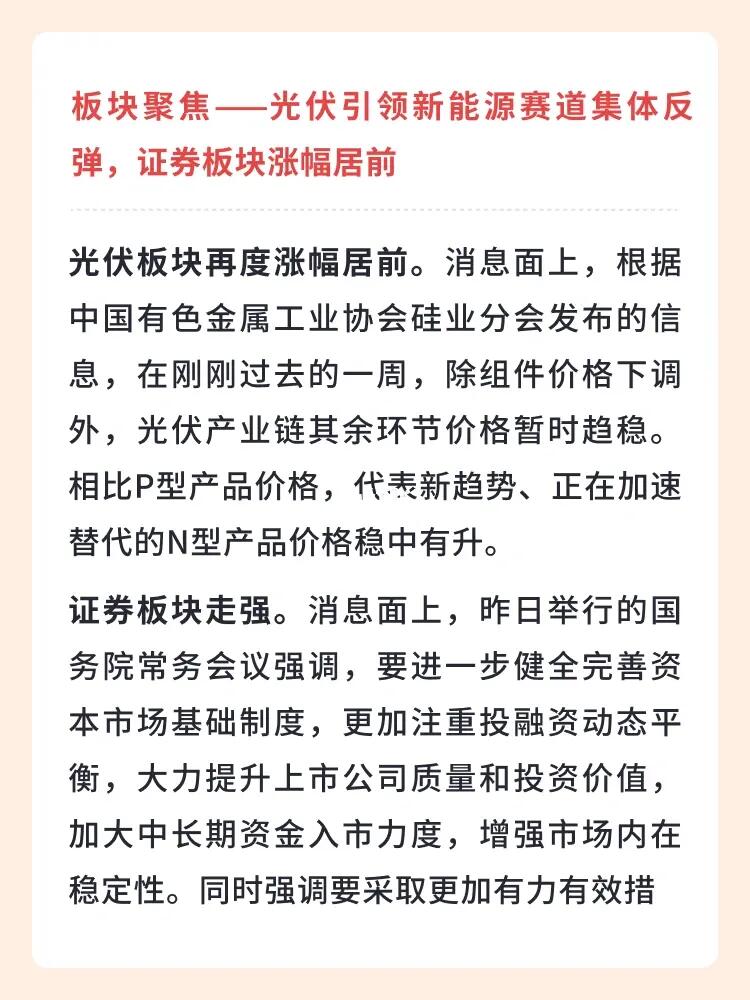 2⃣️ 板块聚焦——光伏引领新能源赛道集体反弹,证券板块涨幅居前
