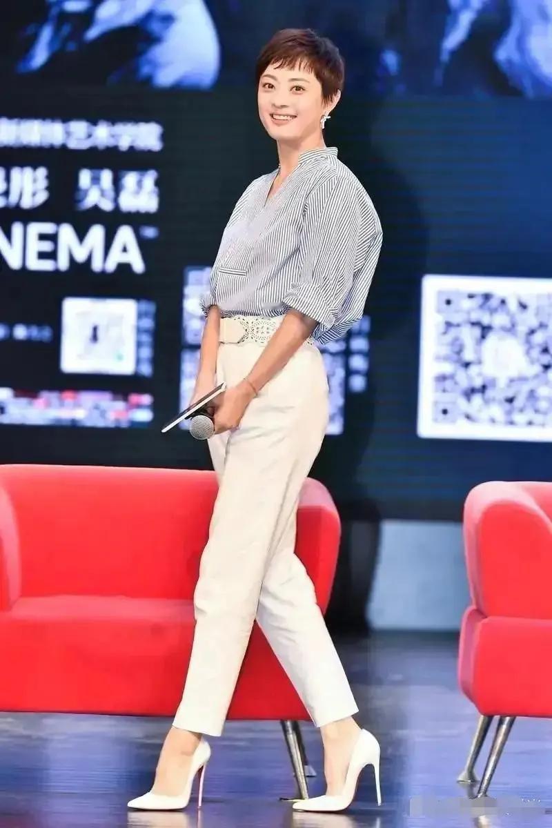 孙俪怎么看都很“养眼”,穿条纹衬衫配白裤,显瘦又时髦,再一次彰显她利落短发下的干