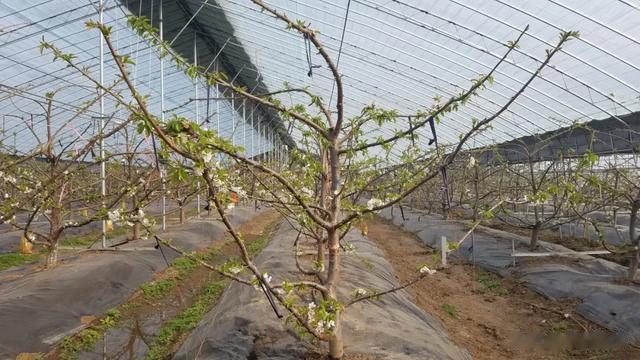 ②樱桃扣棚萌动后,每株追施200克尿素,结合追肥开沟浇小水;盛花期前后,间隔10天各喷1次0.3%尿素加0.3%硼砂,可以显著提高座果率,花期和花后,一般不浇水,防止因灌水加大棚内空气相对湿度和新梢徒长竞争养分。