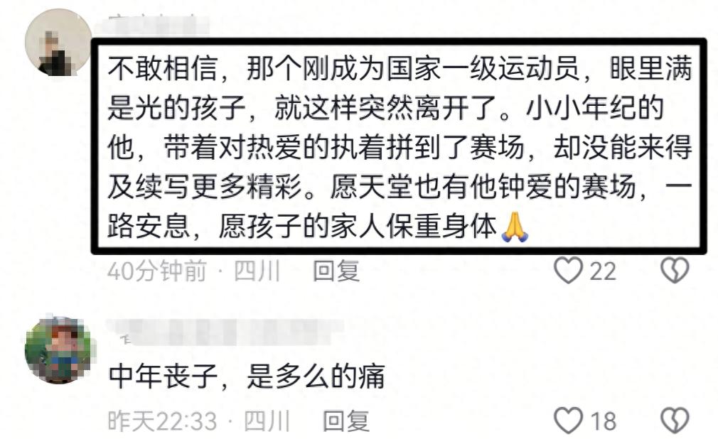 2025年8月,钟翔在四川省青少年射箭锦标赛上大放异彩,一人独揽1金3银,顺利拿到国家一级运动员证书。父亲兴冲冲地在网上分享喜讯,评论区满是“前途无量”“少年可期”的祝福,那时的钟家,满是对未来的憧憬:父亲盼着儿子再过两年能挣钱养家,甚至站上国际赛场为国争光;80岁的爷爷奶奶总对着孙子的奖牌笑眯了眼,觉得这孩子就是家里的希望。谁能想到,短短几个月后,这些美好的念想全成了扎心的回忆,曾经热闹的评论区,如今只剩满屏的哭脸表情包。