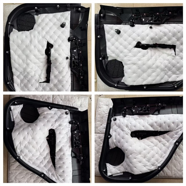 后门施工遵循同样的专业标准,先对后门板进行隔音处理,再将弗莱德FDX-165同轴喇叭原位安装,无需改动原车线路,实现无损升级。为进一步提升隔音效果、减少共振杂音,技师还在四门饰盖加装吸音棉,细节之处尽显专业。所有门板安装完成后,进行精准还原,还原后的门板与原车状态完全一致,看不出任何改装痕迹,兼顾美观与实用性。