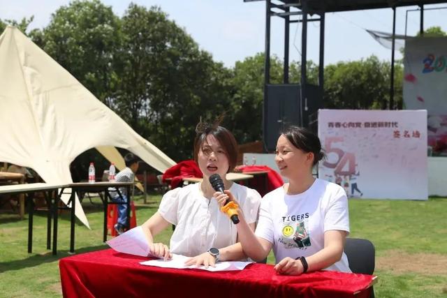 热情高涨的户外团建活动,青年们默契配合,以肢体语言传递五四关键词。
