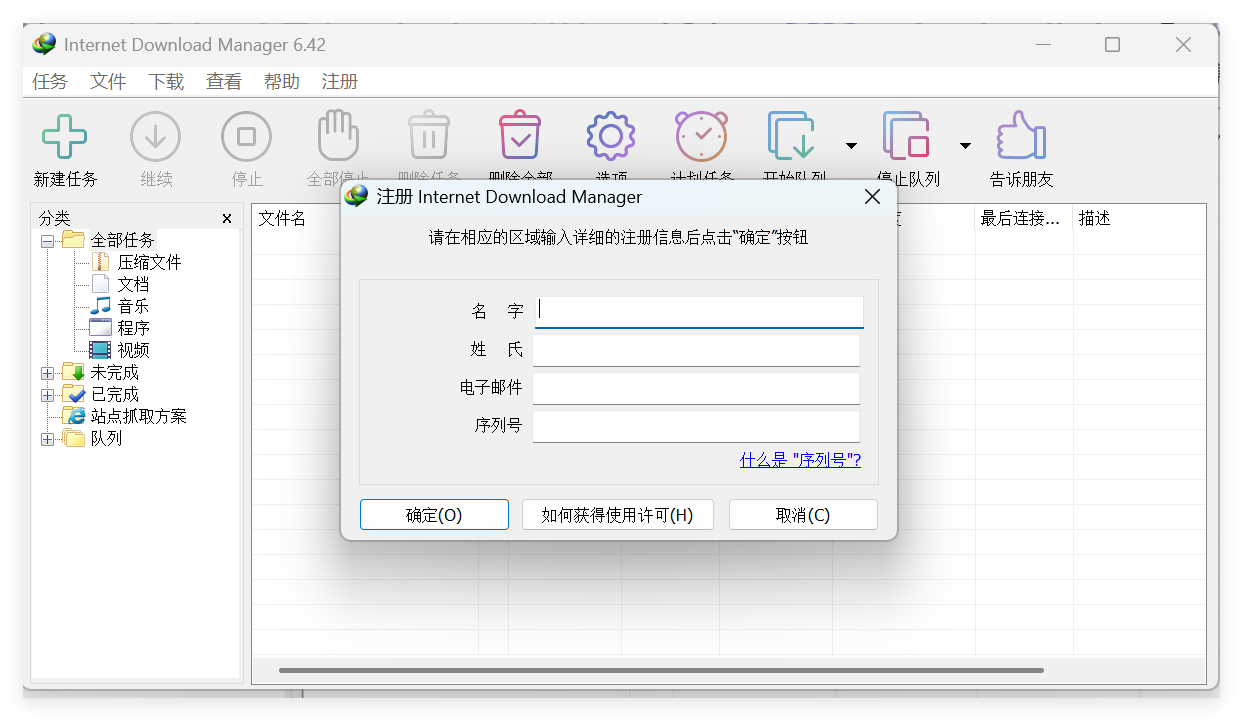 IDM全称 Internet Download Manager,即下载管理器,可以说是目前下载能力和稳定性最好的下载工具,但是其为一个收费软件。不过,网上多大神,有免费白嫖的手段。当然,若资金充裕,还是建议付费支持一下正版。