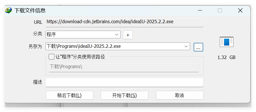 点击后, IDM 插件会自动捕获下载请求,并弹出如下窗口: