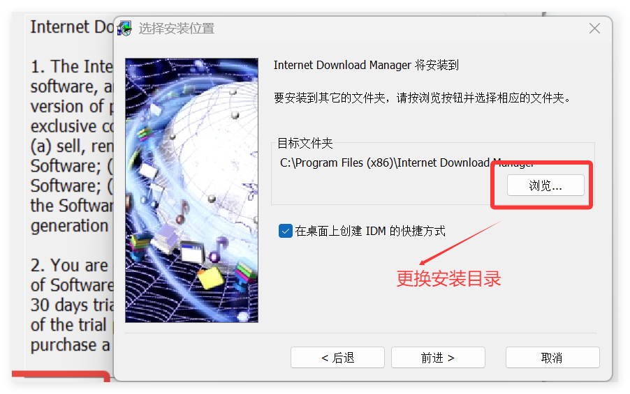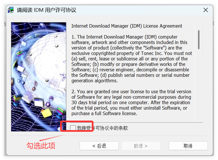 接着点击“前进”,并勾选“我接受许可协议中的条款”: