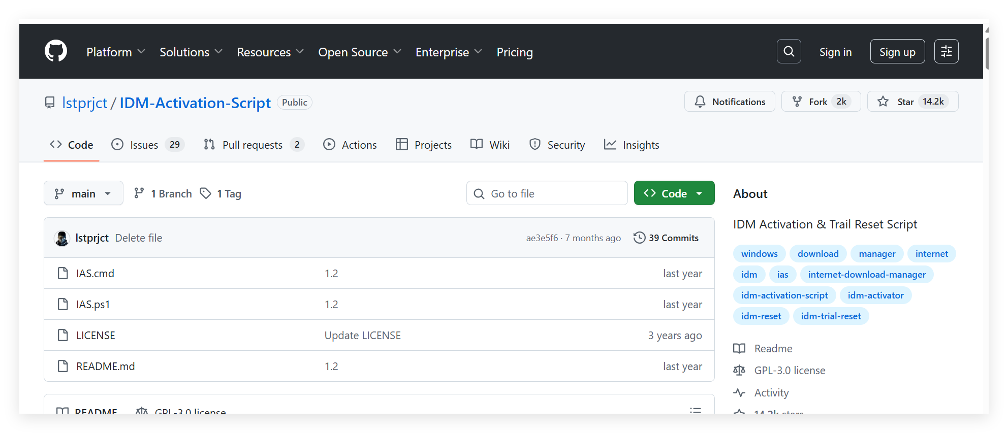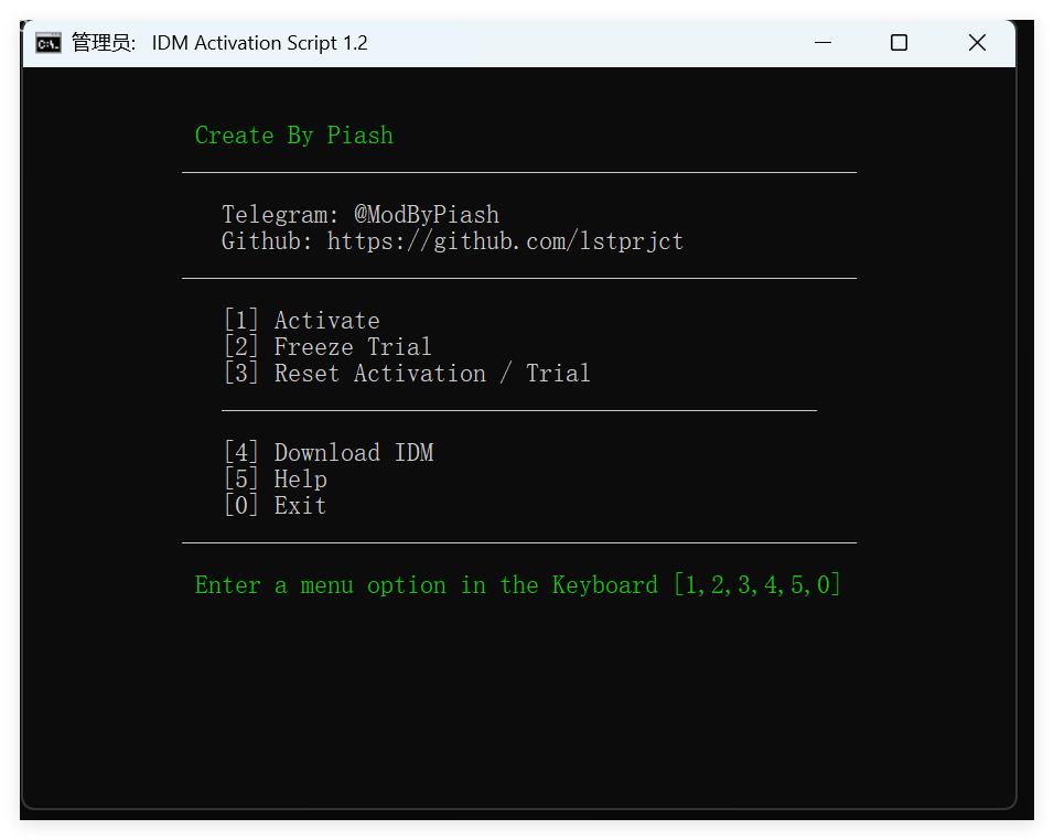 当然,还是那句话,如果条件允许还是建议大家花钱支持正版。没条件那就只能另辟蹊径,进行破解。可能网上破解的方式很多,我这里采用脚本的方式进行破解。其GitHub地址为:https://github.com/lstprjct/IDM-Activation-Script?tab=readme-ov-file: