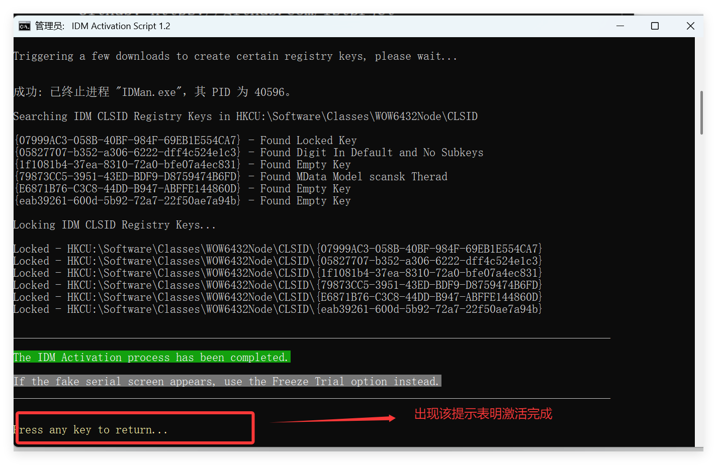 接着输入 0 退出。退出后打开 IDM 进行查看,发现已激活: