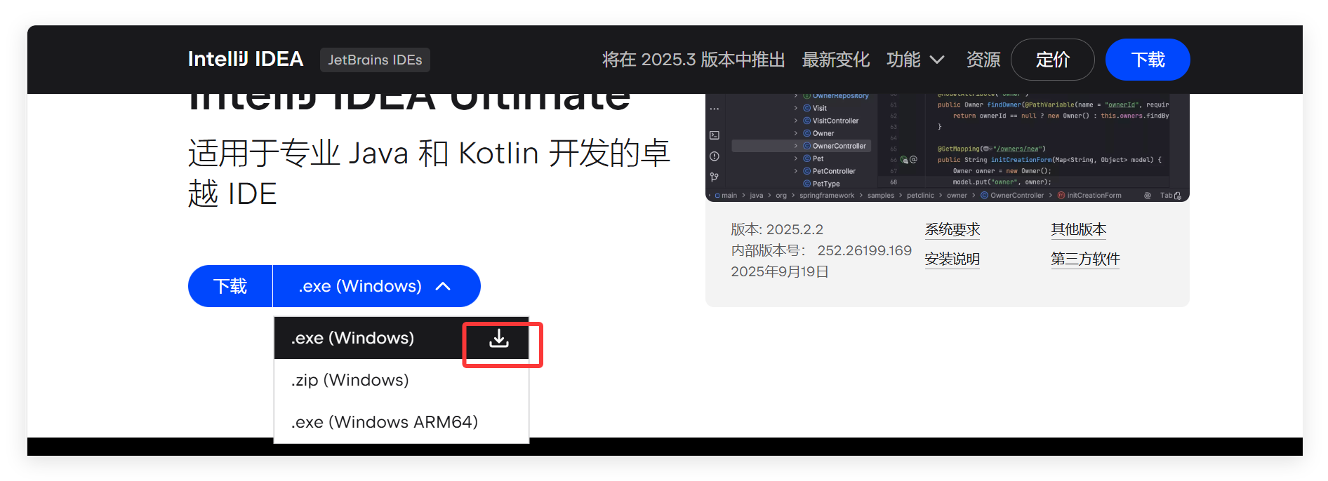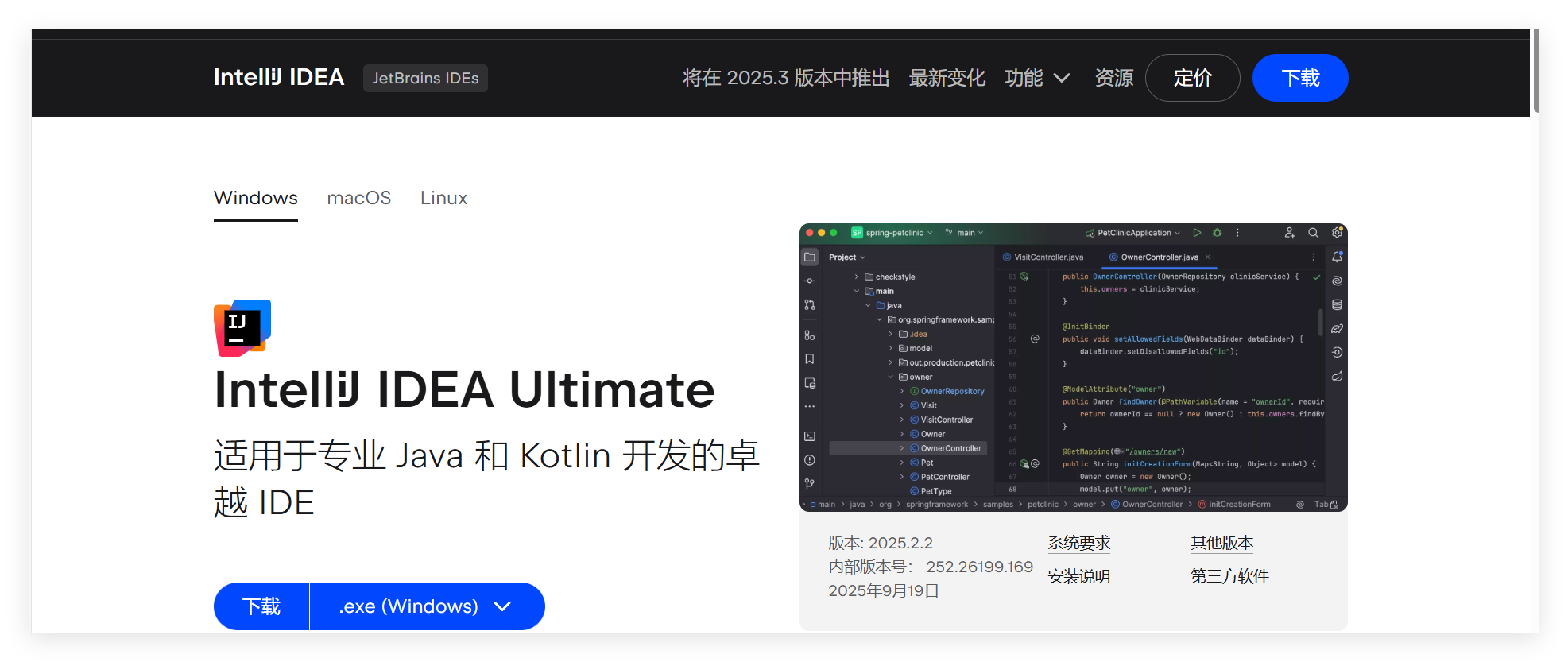 四、验证还是以下载 IDEA 为例进行验证,其下载地址为:下载 IntelliJ IDEA