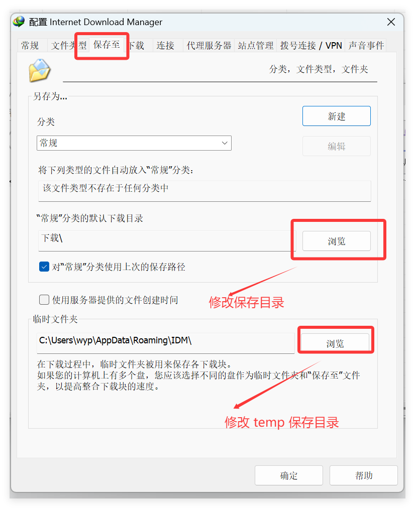 点击后跳转到设置页面,接着选择“保存至”,并按下图所示修改保存目录和临时文件保存目录: