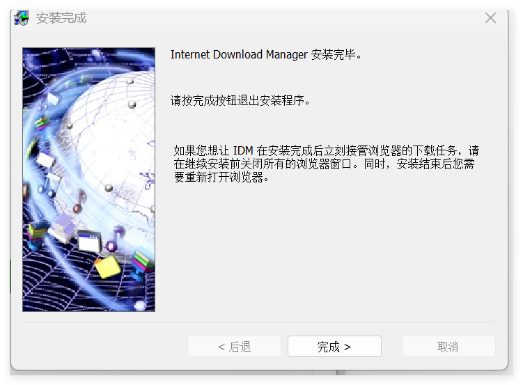 点击“完成”后会自动向安装的浏览器推送安装 IDM 插件请求,此时只需要点确认即可。