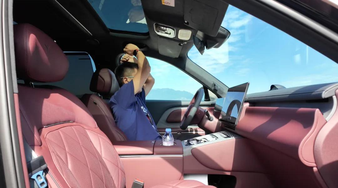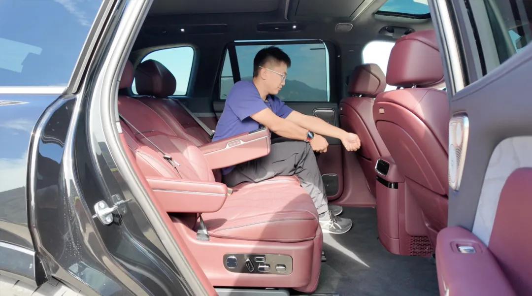 后排的配置更是直接拉满,21.4英寸的后排娱乐屏同样拥有3k分辨率,两张座椅均有一块3.5英寸的多功能屏幕,能够控制座椅的各种功能以及两侧电动遮阳帘和天窗遮阳帘,再配合上全车4个电动开关门,第二排确实足够尊贵。